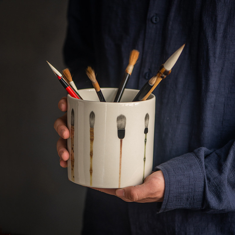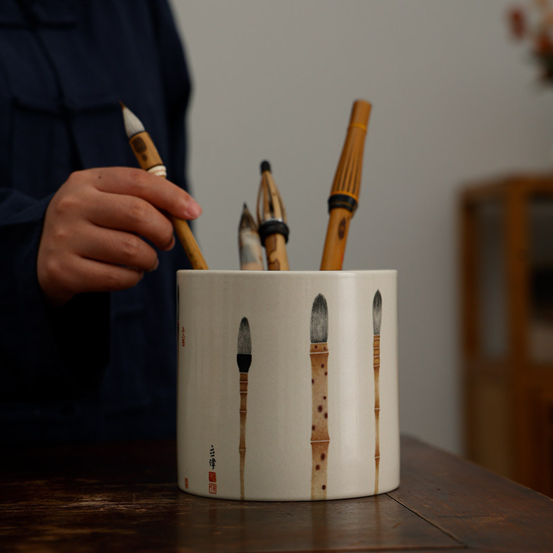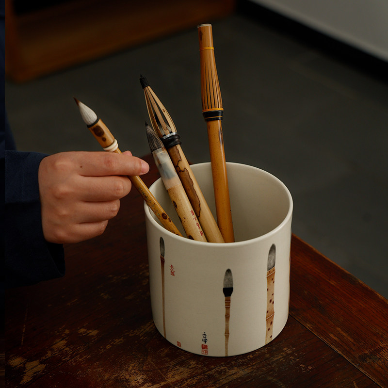 上上签笔筒 景德镇艺术陶瓷器文房笔筒古董寓意收纳收藏品小摆件