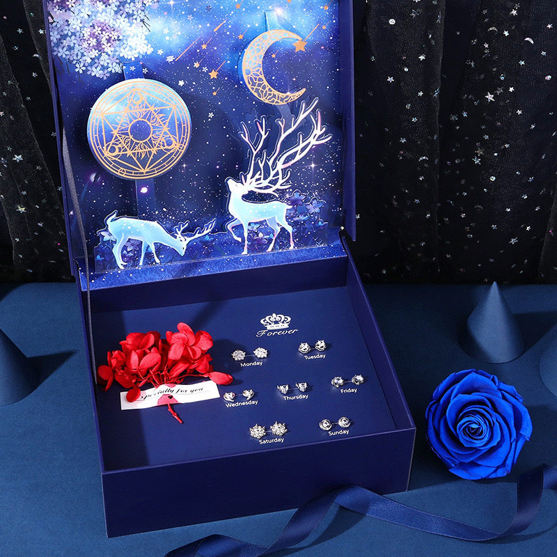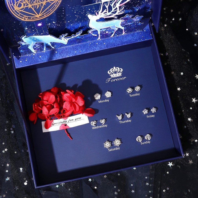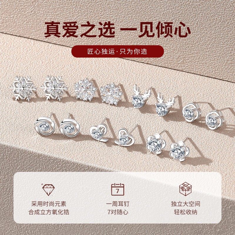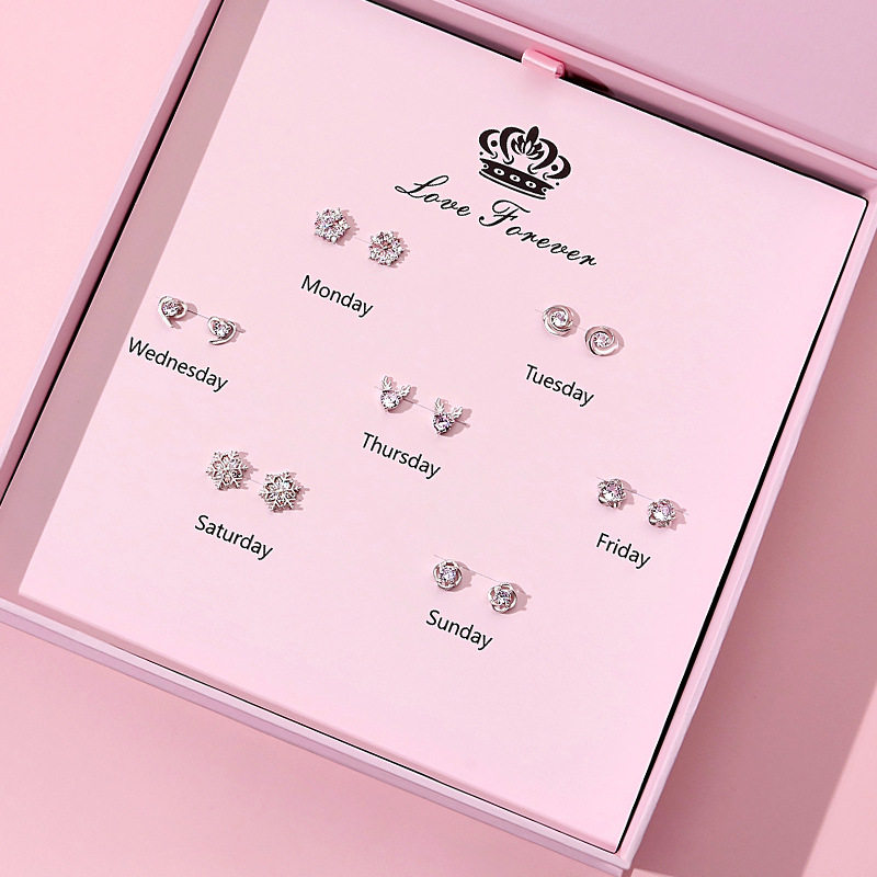 925银针一星期耳钉女耳环耳饰生日七夕情人节礼物送女朋友礼盒装