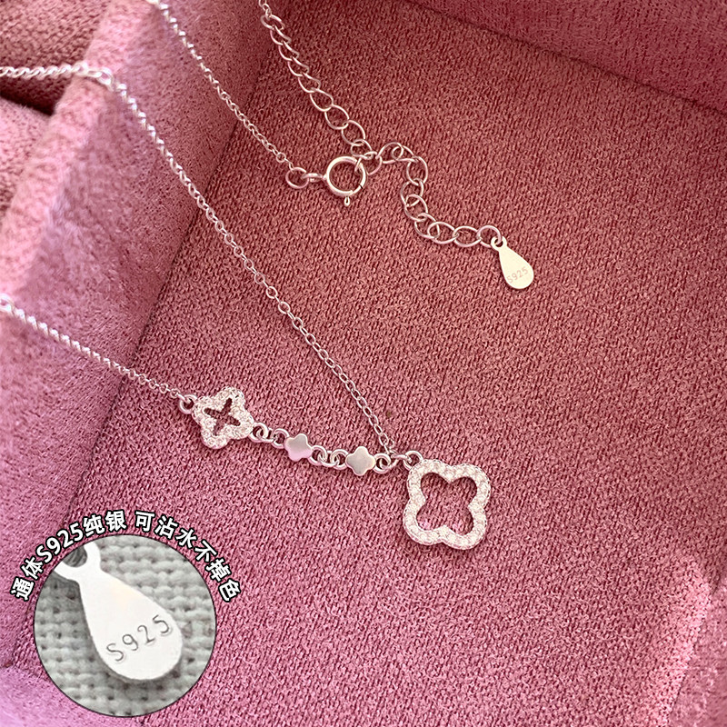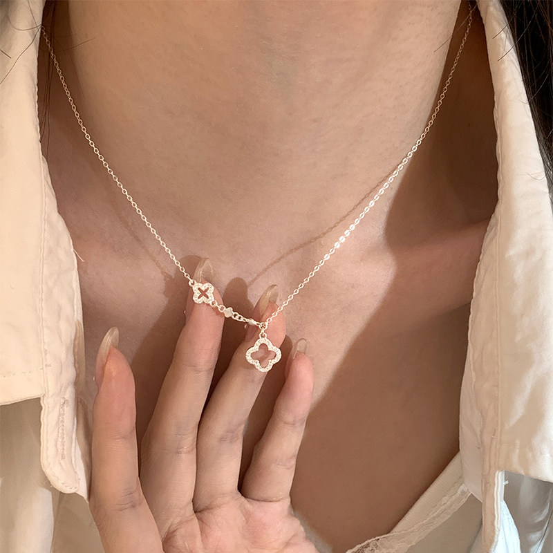 纯银镂空四叶草吊坠项链女款2026新款精致小众锁骨链女高级感玉髓