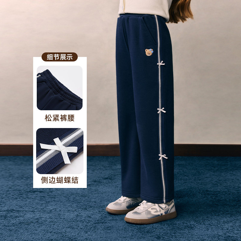 罗蒙儿童卡其色校园服裤子男童松紧西裤小学生加绒女童藏青运动裤