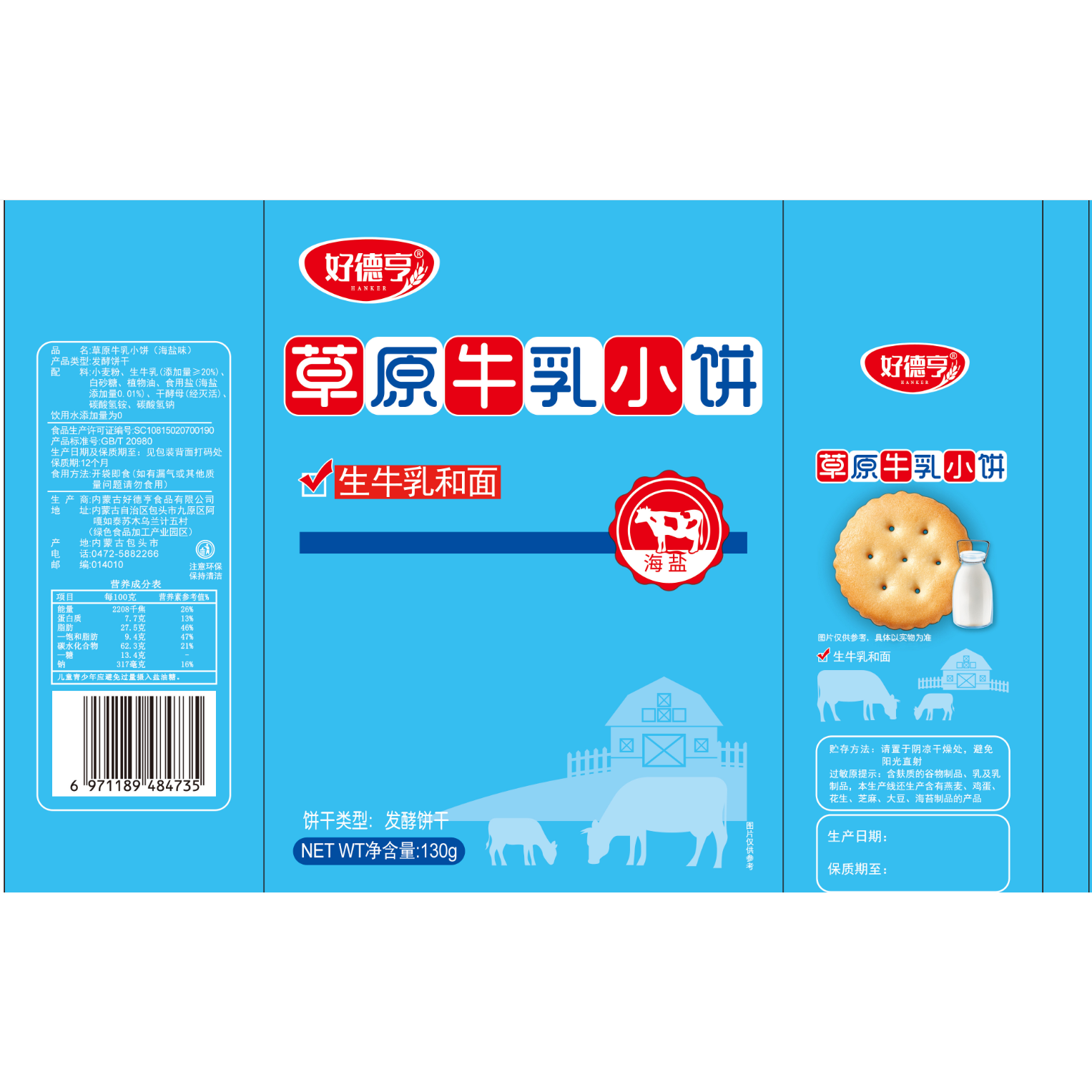 【26年3月生产】内蒙古好德亨草原鲜乳小饼干天日盐味130g*4包