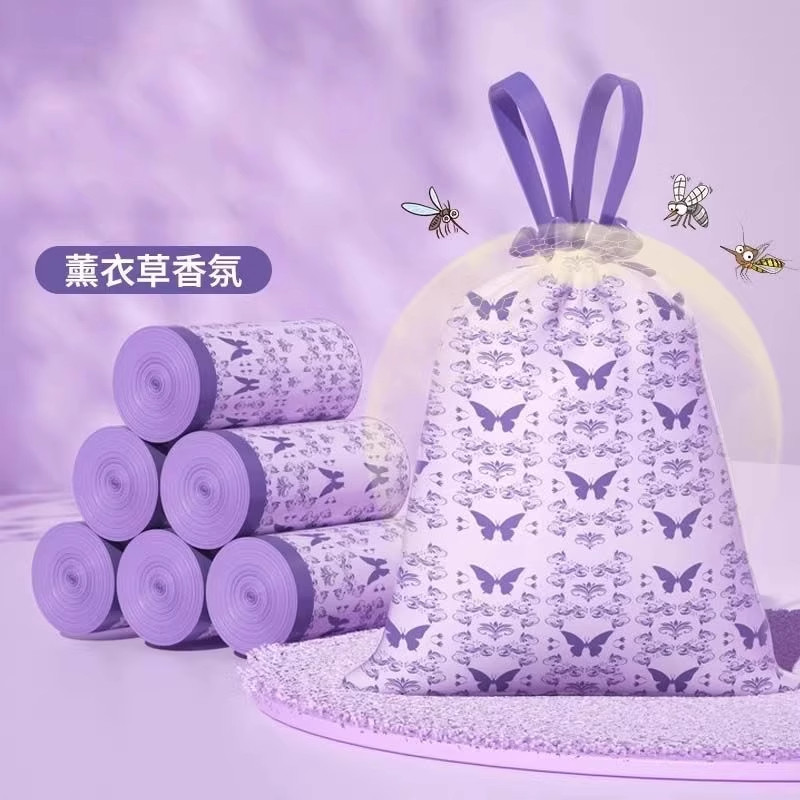 薰衣草免撕抽绳垃圾袋家用加厚手提式厨房塑料袋办公室清洁袋特厚
