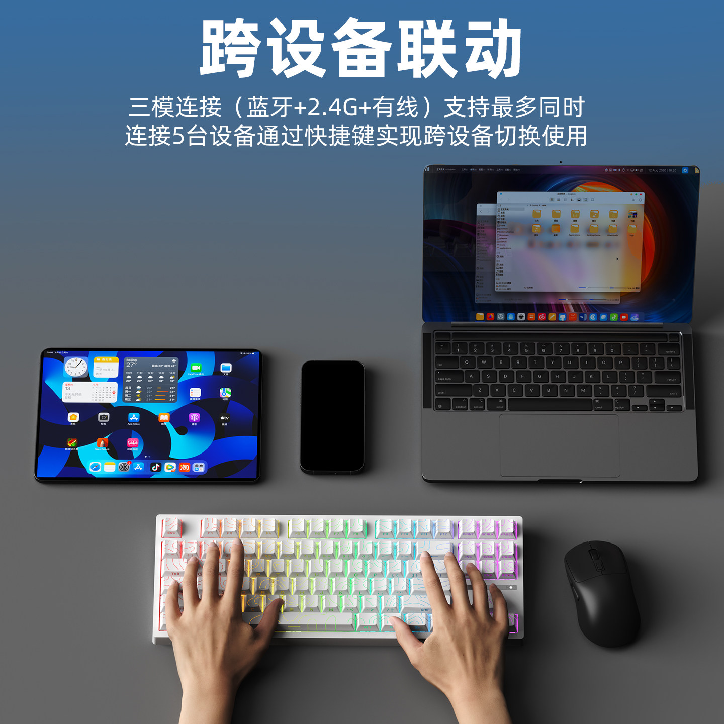 三模无线 RGB背光 热插拔轴座 PC透明定位板