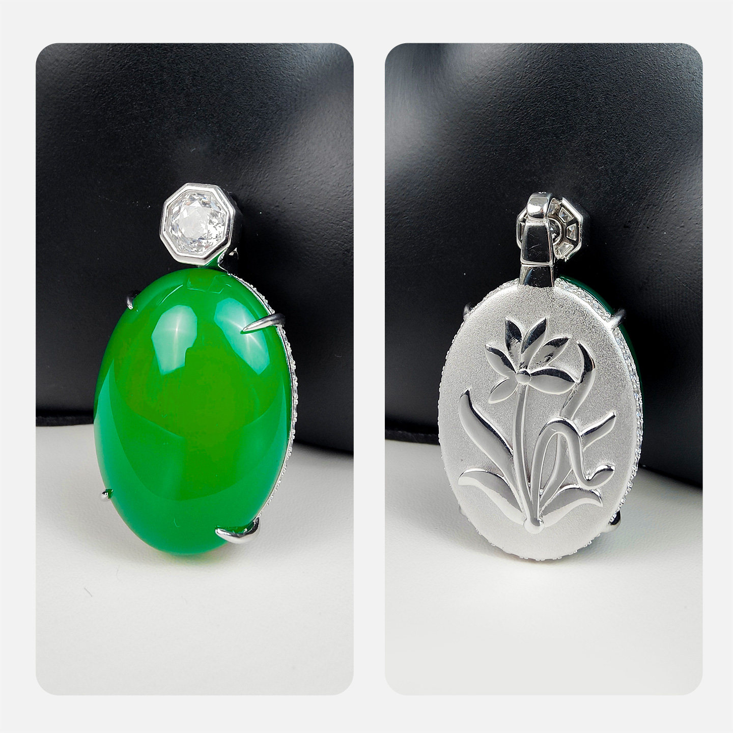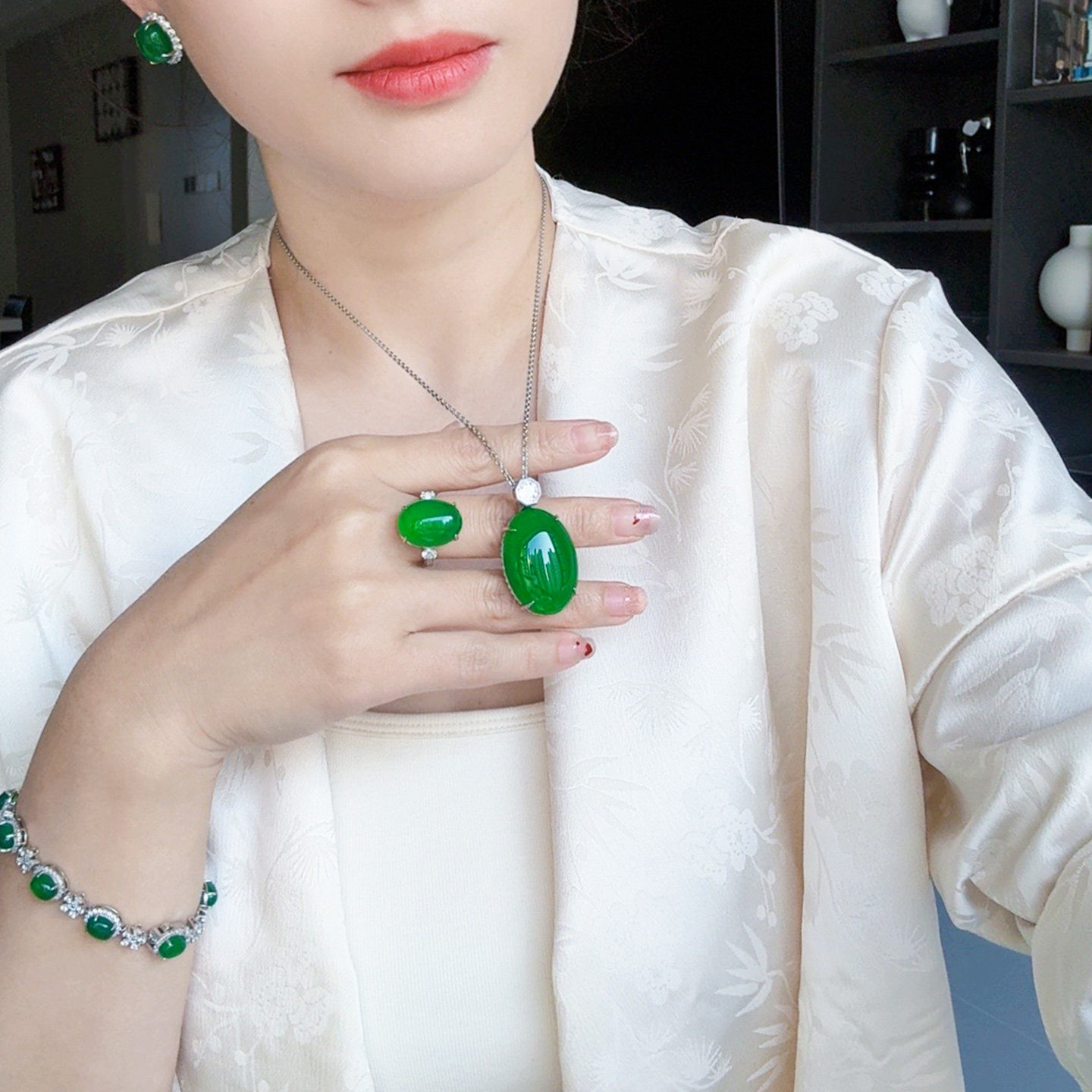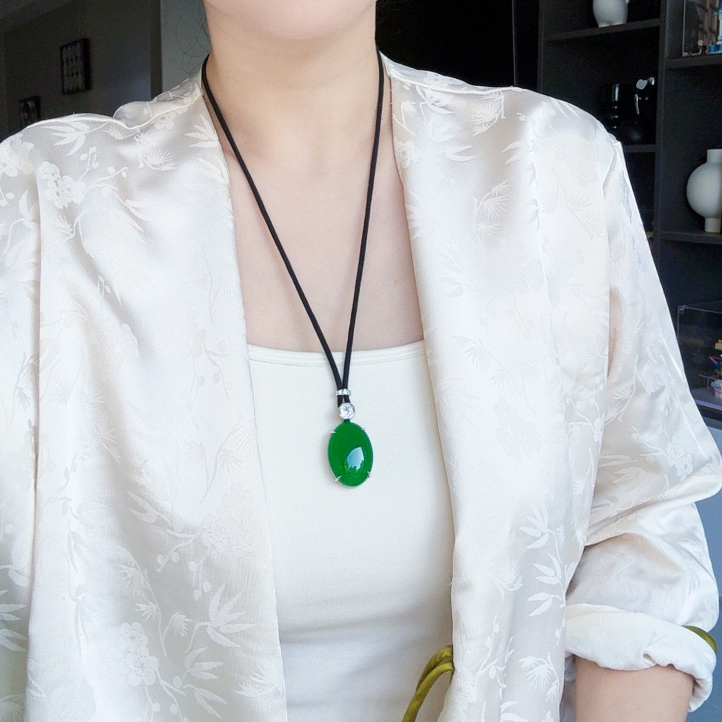 AILEQ925银天然玉髓简约四爪鸽子蛋吊坠满绿珠宝雅丹春夏项链D9
