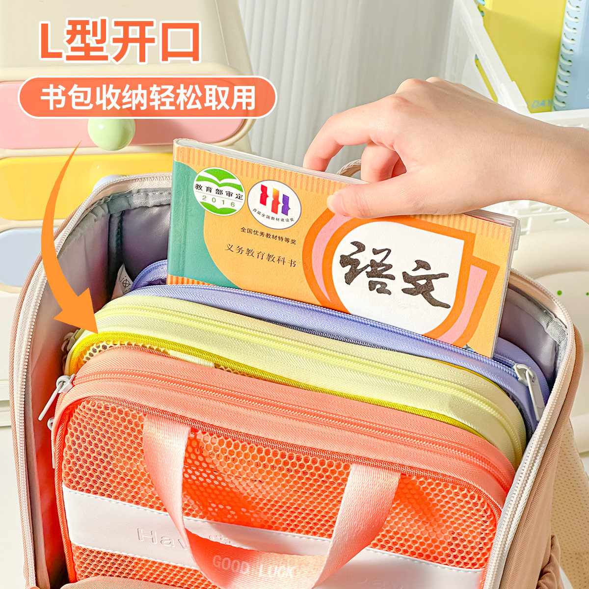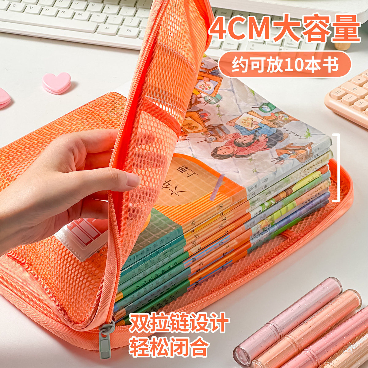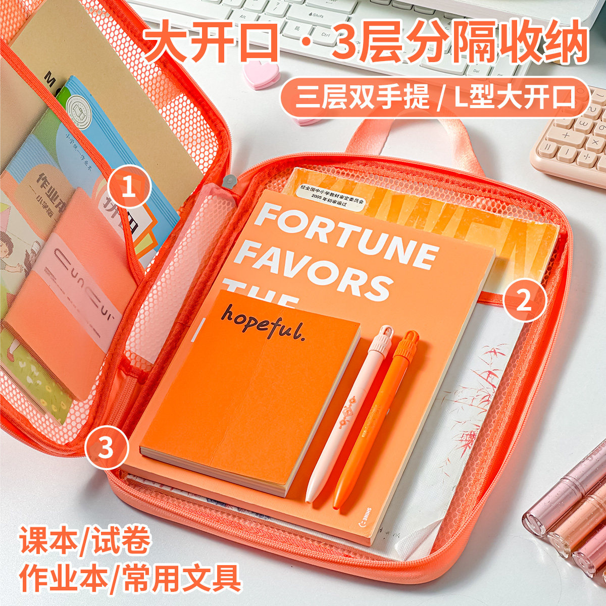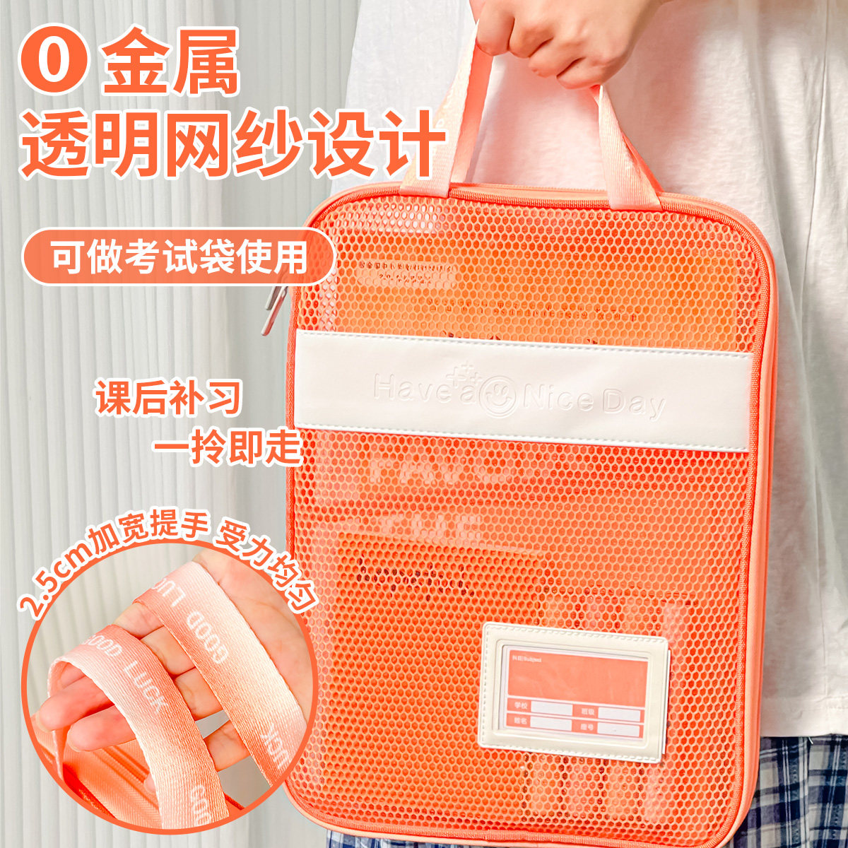三年二班 L型科目分类袋大容量科目袋糖果色手提袋透明文件袋小学生多层拉链网纱袋拎书袋作业袋初中生补习袋