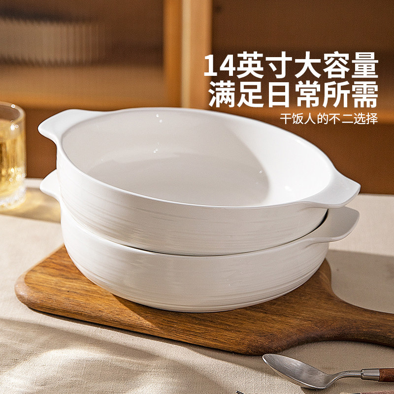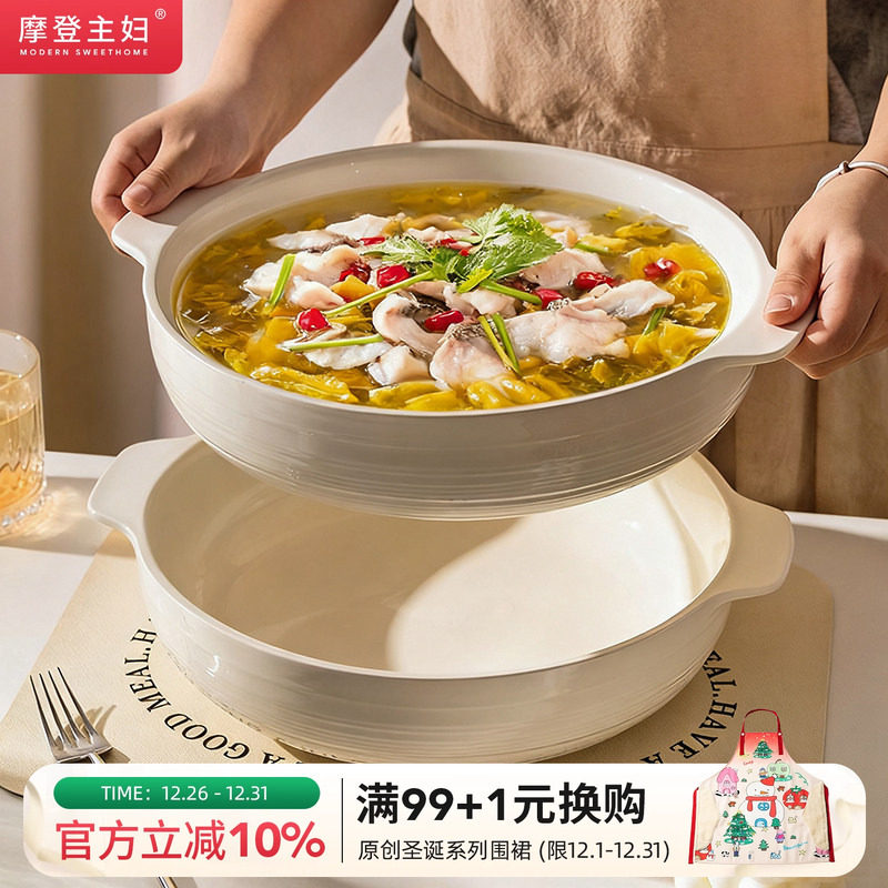 摩登主妇高温白瓷大汤碗家用酸菜鱼大盆碗水煮鱼肉片双耳大号汤盆