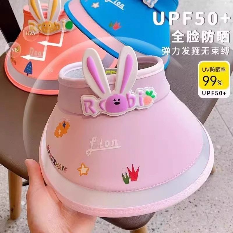 儿童防晒遮阳帽女孩男童太阳帽小兔子空顶帽子防紫外线薄大帽檐