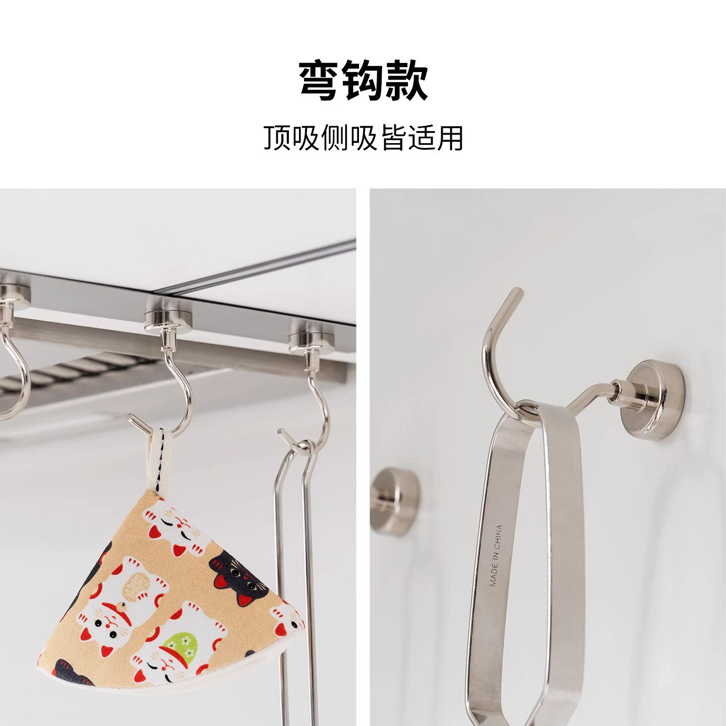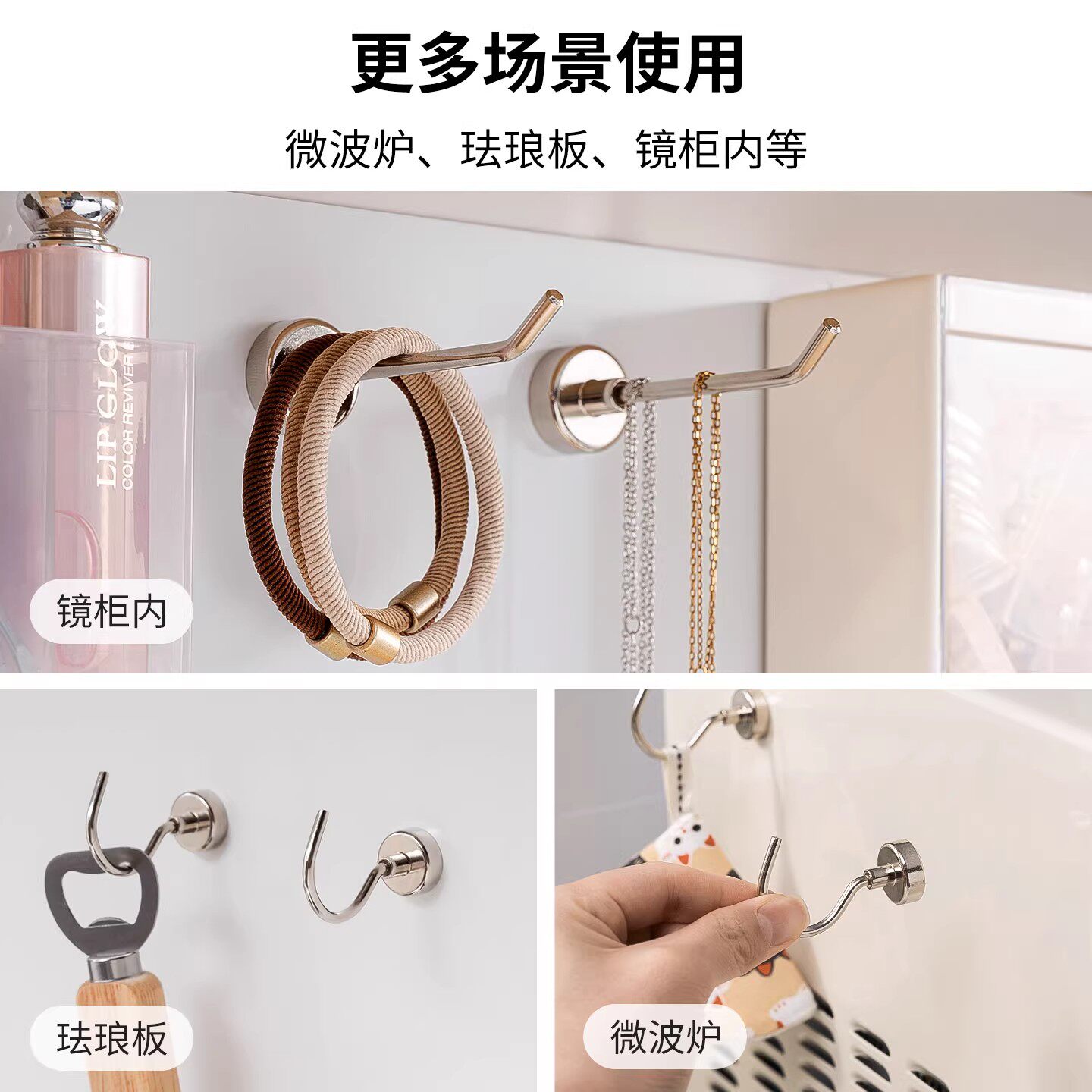 强力磁吸挂钩无痕免打孔吸铁石强磁冰箱金属长条玄关挂钥匙挂衣架