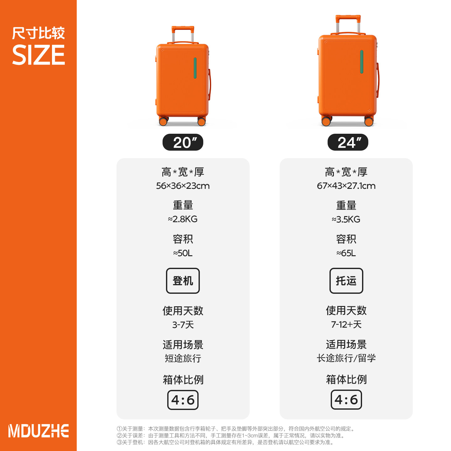 米熙高颜值品质登机20寸拉杆行李箱女大容量24结实小旅行箱子男26