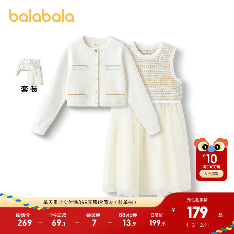 巴拉巴拉balaOne童装女公主裙2025秋冬新款儿童连衣裙针织网纱裙