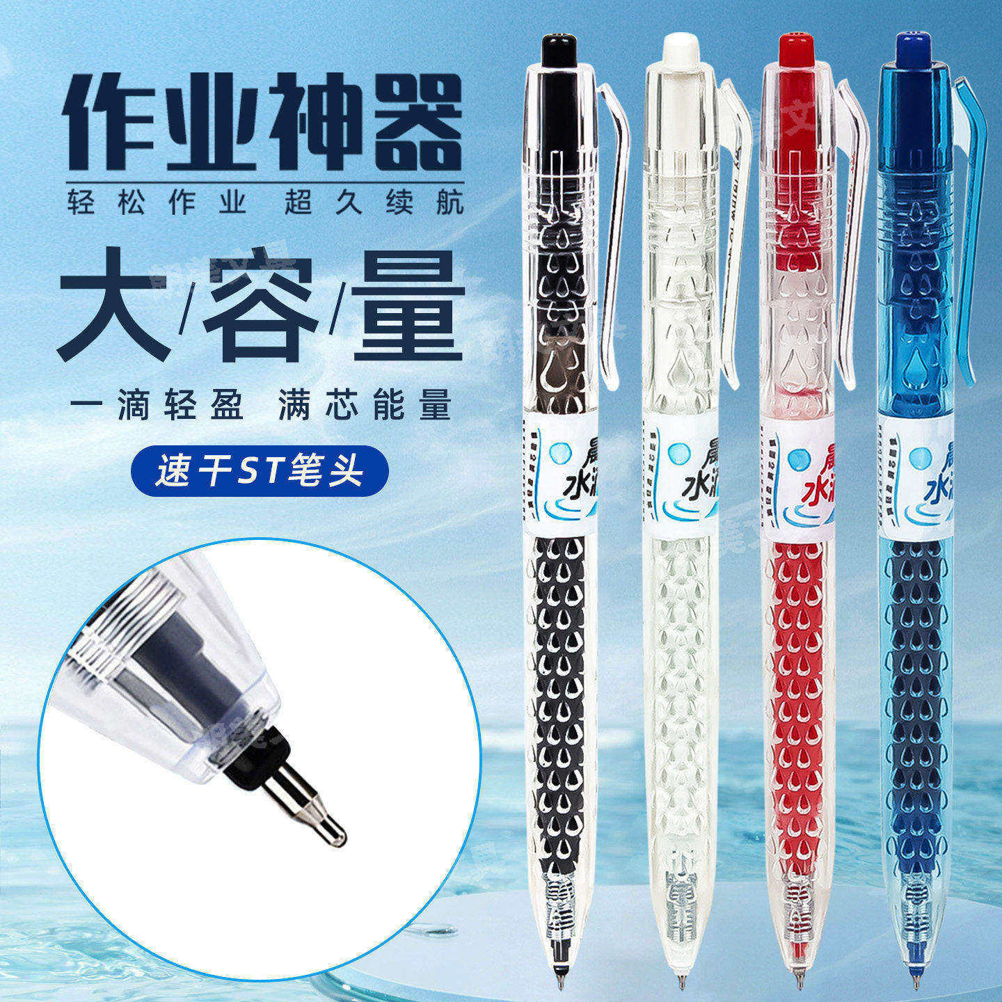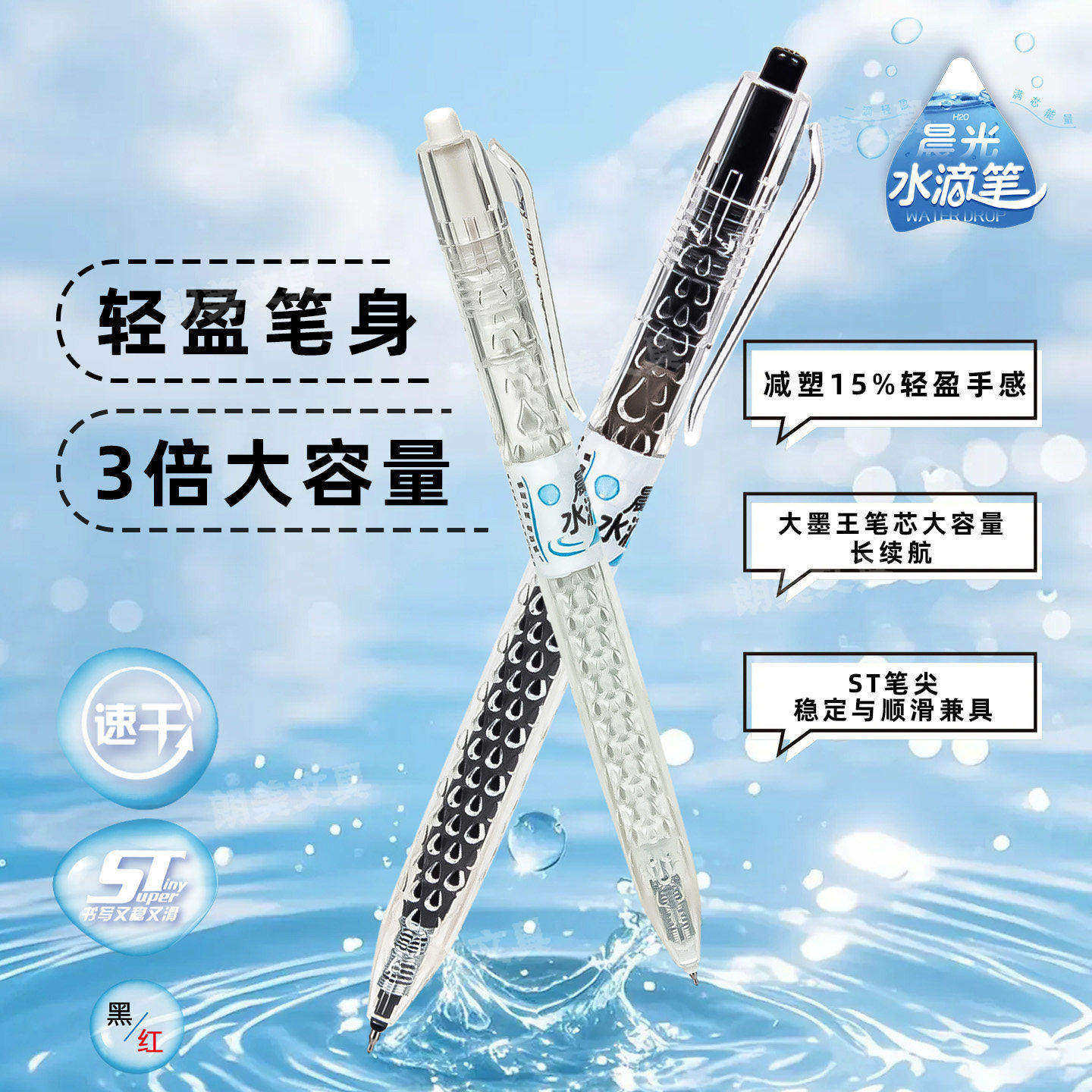 晨光水滴笔按动中性笔速干ST头黑红蓝作业刷题笔学生考试用按动笔