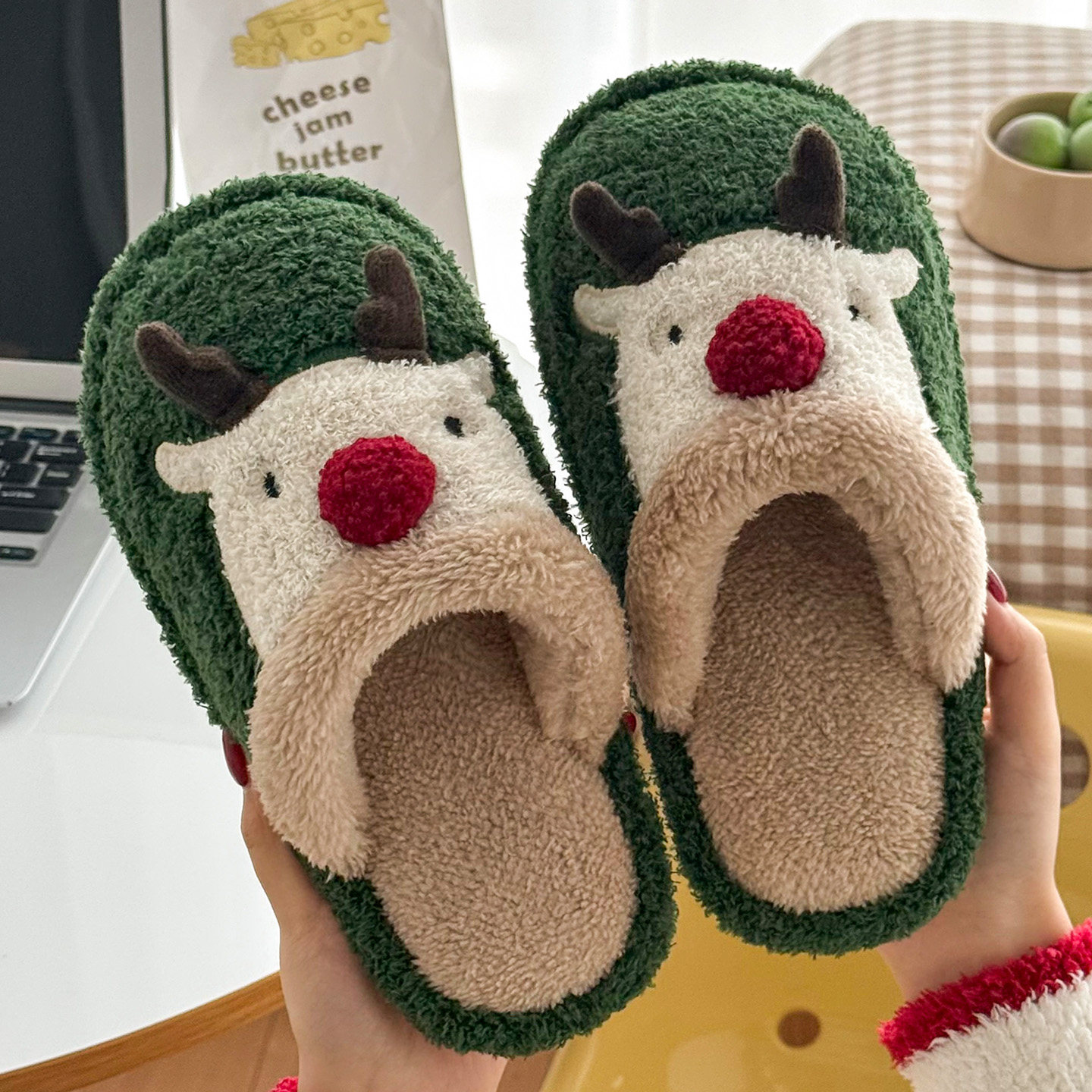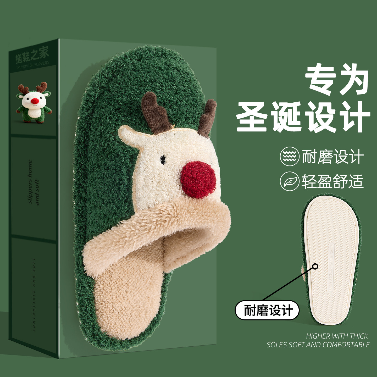 可爱圣诞麋鹿棉拖鞋女士冬季新款室内居家用防滑毛绒保暖棉拖女款