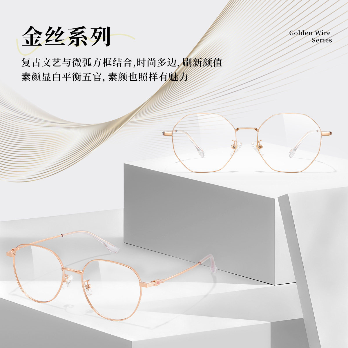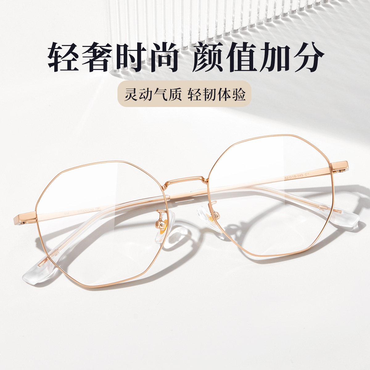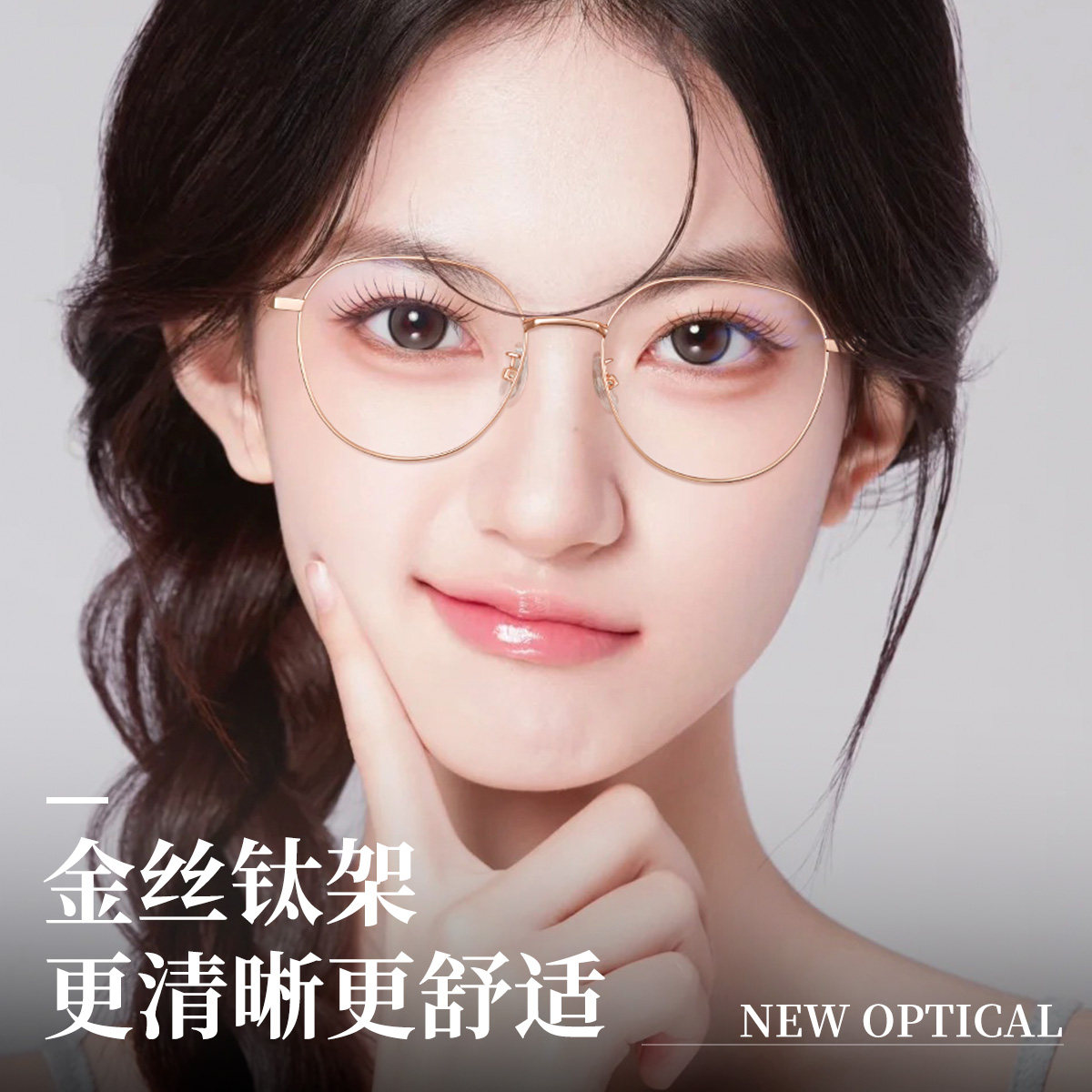 蔡司眼镜女可配度数超轻纯钛玫瑰金丝圆框防蓝光可配镜片972302