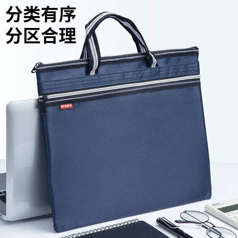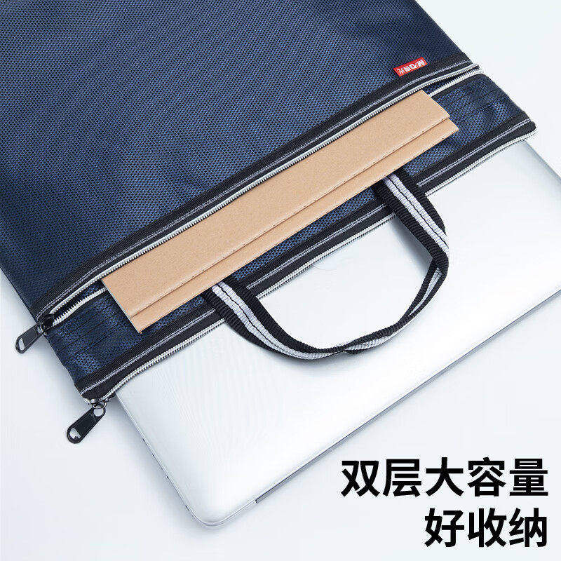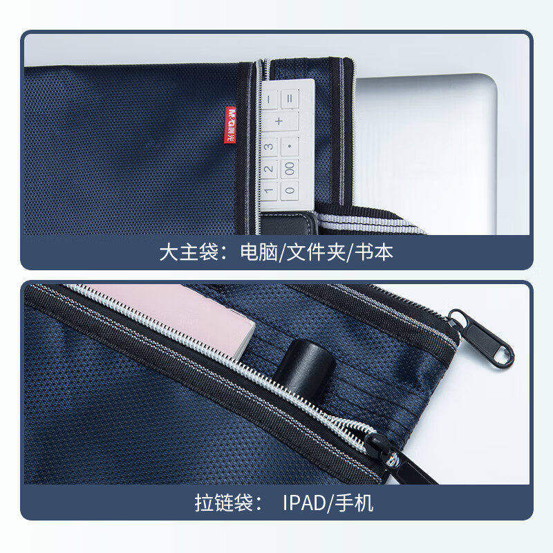 晨光手提资料袋A4防水拉链袋手提电脑包双层文件包办公会议公文袋文件袋ABB93097学生用补课大号布料袋子