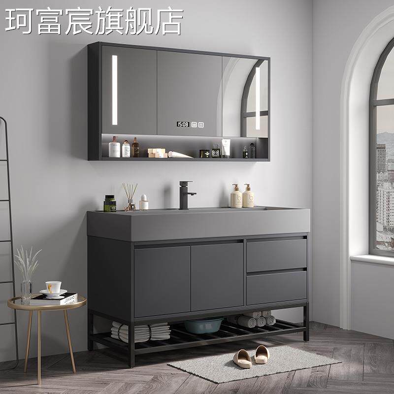 珂富宸海洋盆浴室 柜 纳米岩石一体盆智能实木洗手盆 柜 洗脸盆卫生间洗漱台摆件饰品床笠拉车
