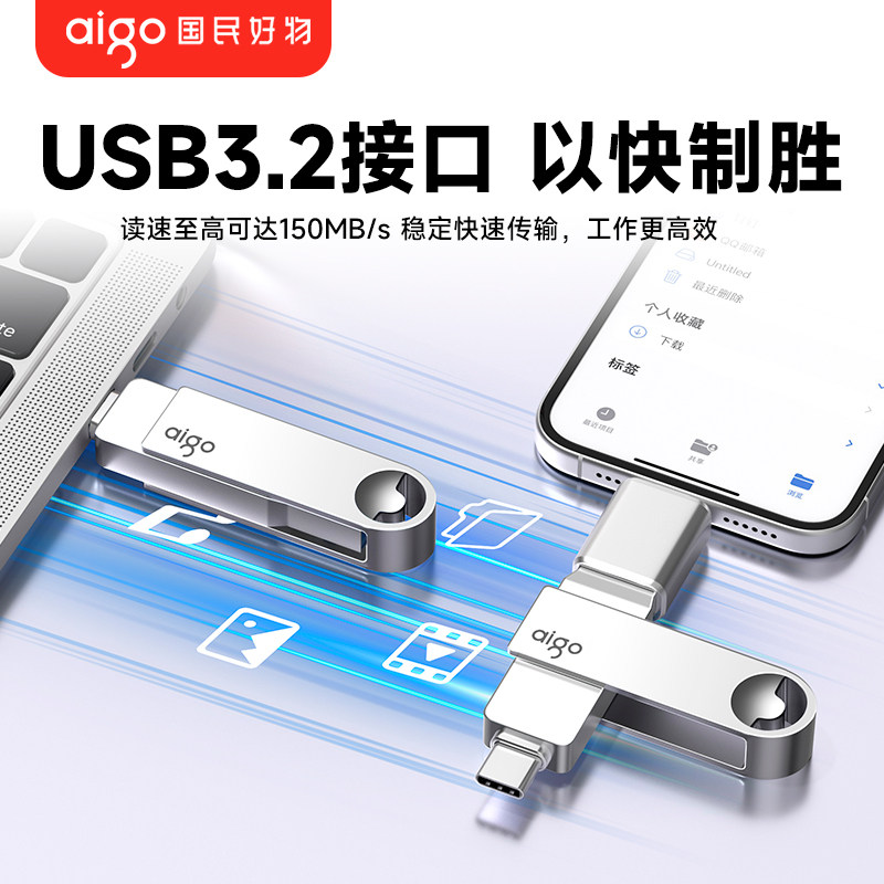 爱国者手机U盘typec双接口电脑两用官方旗舰店高速大容量优盘双头