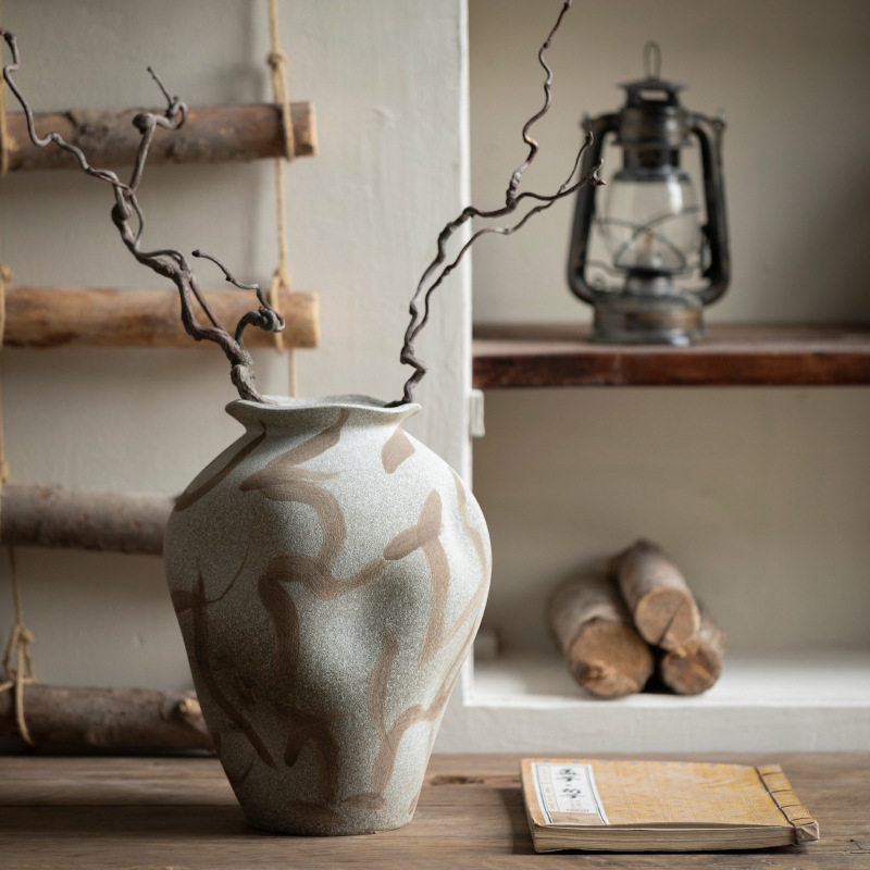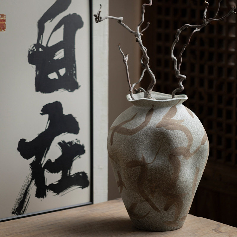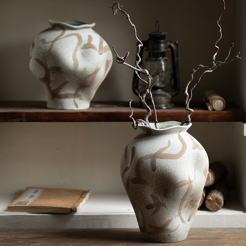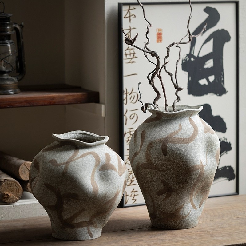 景德镇侘寂风陶瓷花瓶创意手捏款插干花花器客厅玄关复古装饰品