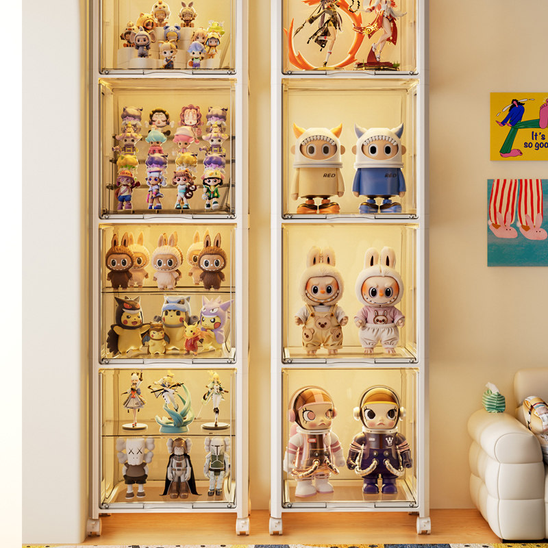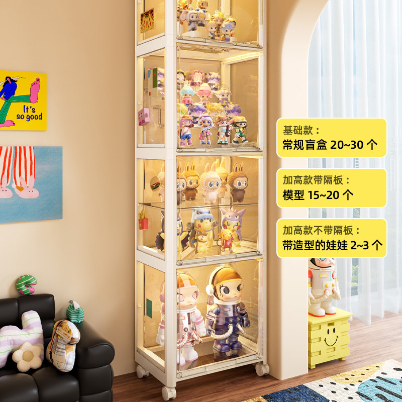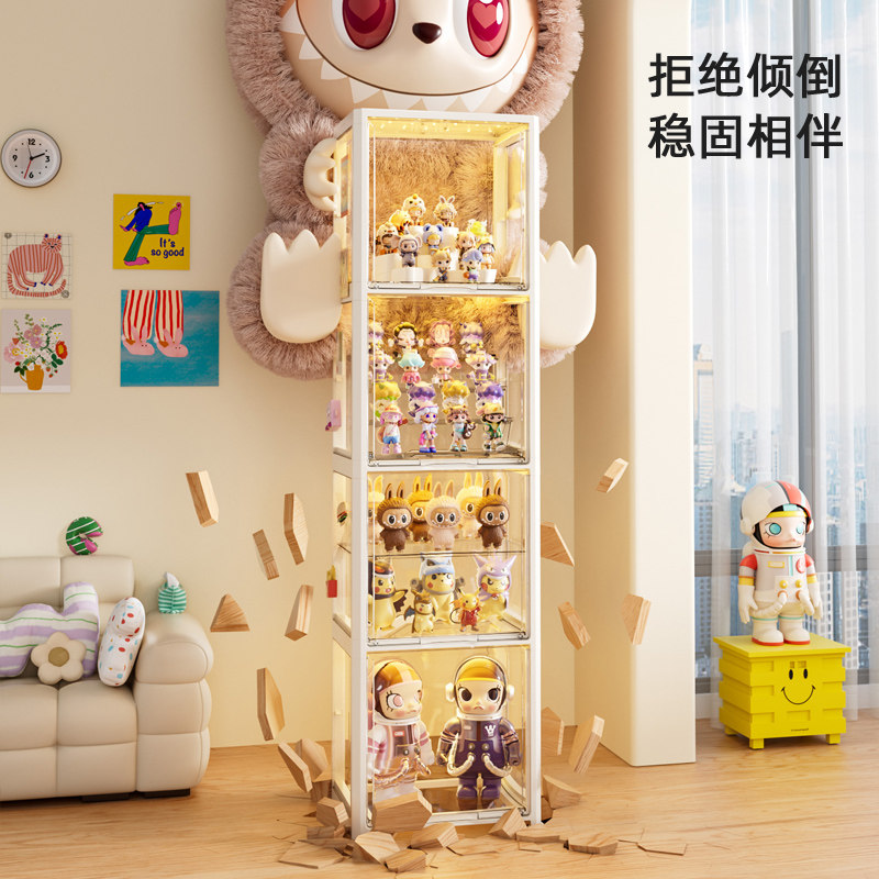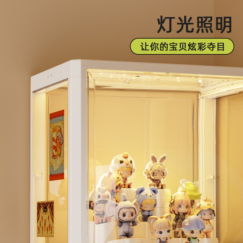 手办展示柜带灯盲盒收纳展示架适用乐高玩具模型收纳盒摆件陈列柜