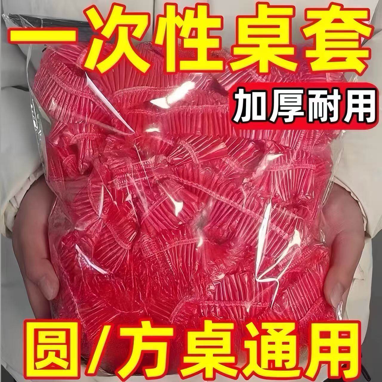 餐桌一次性桌布束口松紧带圆桌长方形桌罩塑料布台布桌套红色防油