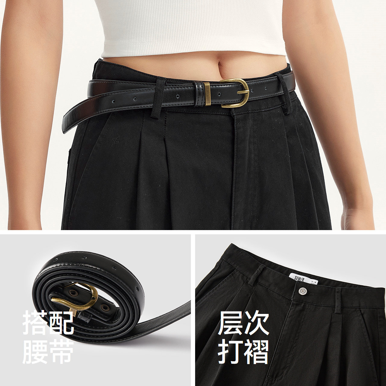 打褶设计巧妙遮肉 搭配腰带更省心 细腻磨毛