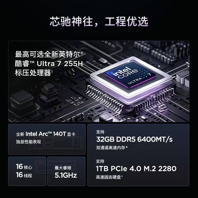 酷睿Ultra处理器+16英寸大屏+指纹解锁+背光
