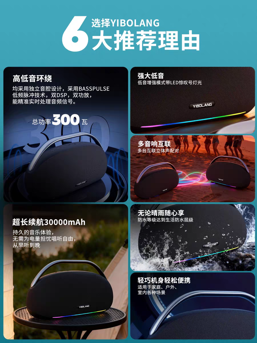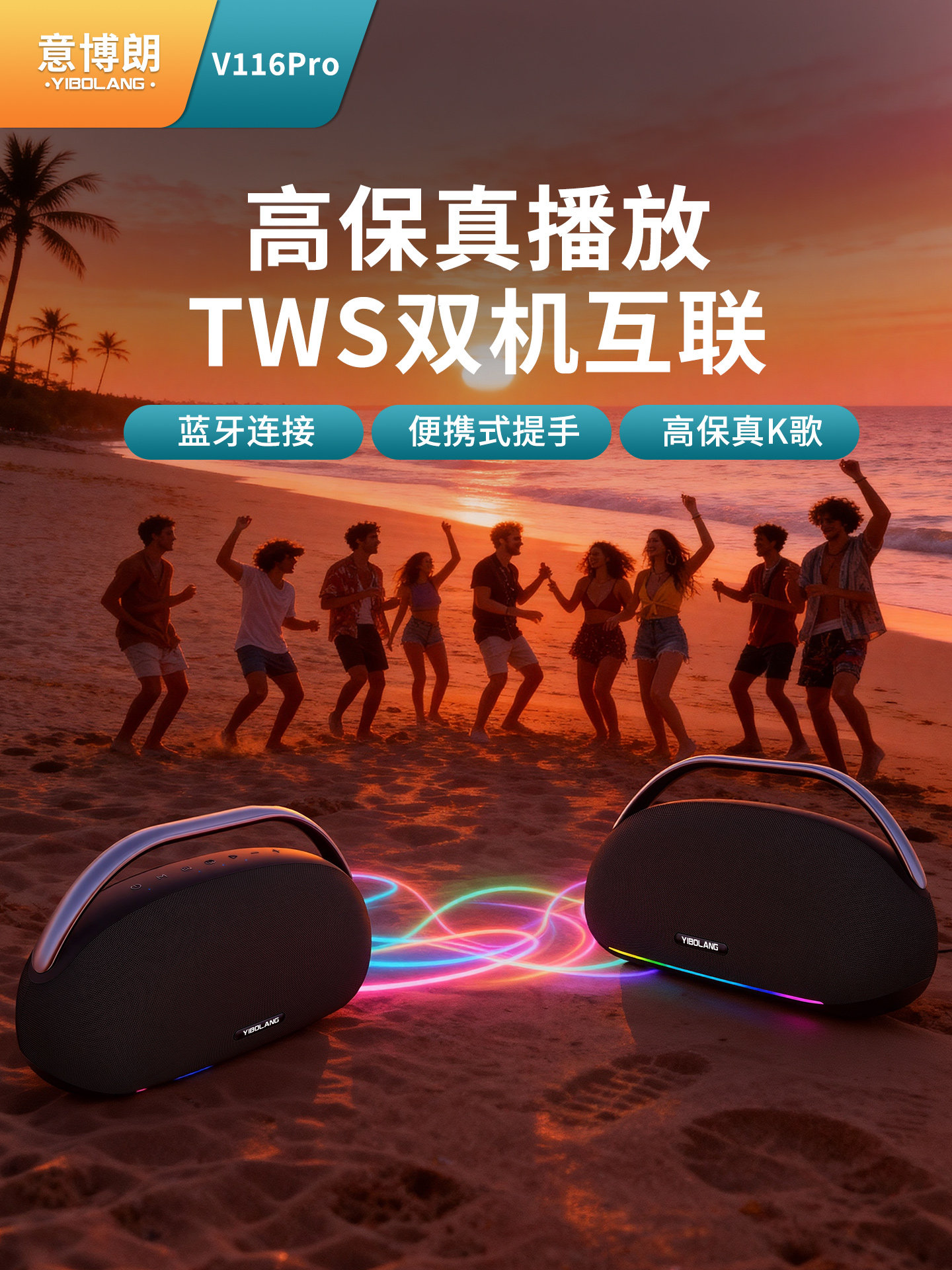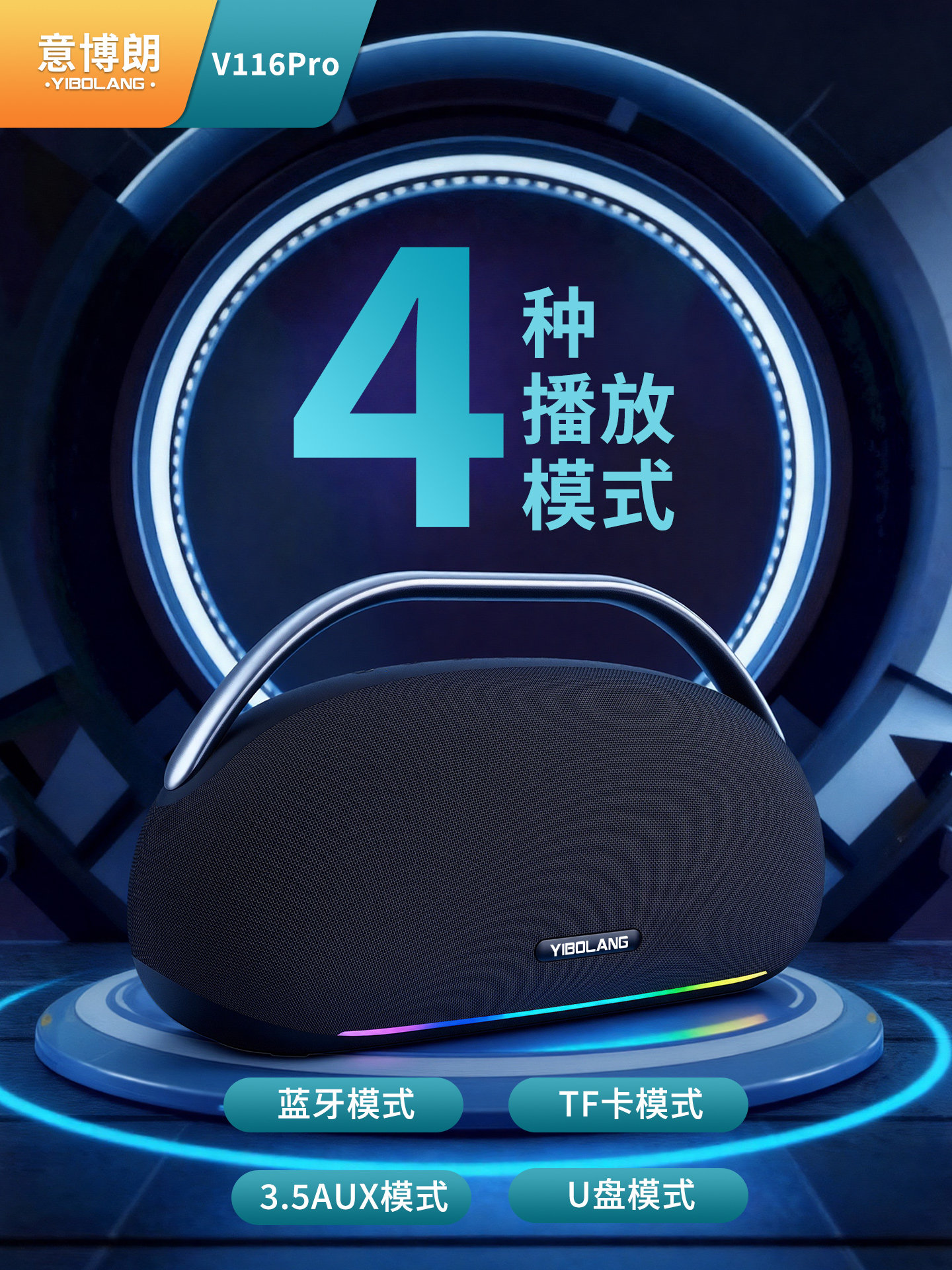意博朗V116Pro桌面蓝牙音箱边走边唱无线重低音炮便携K歌HIFI音箱