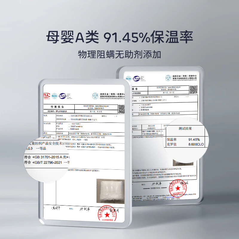 100%物理阻螨,保温率91.45%