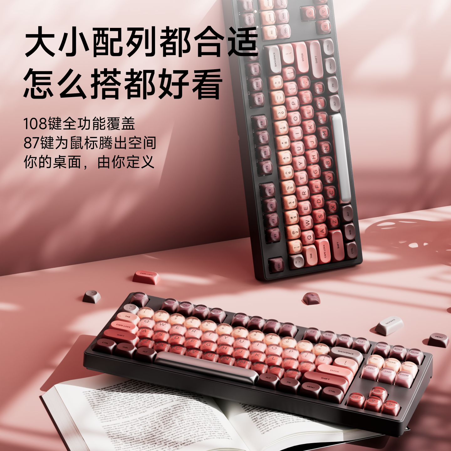 前行者粉底液机械键盘键帽可爱圆润女生高颜值108一整套87个性68