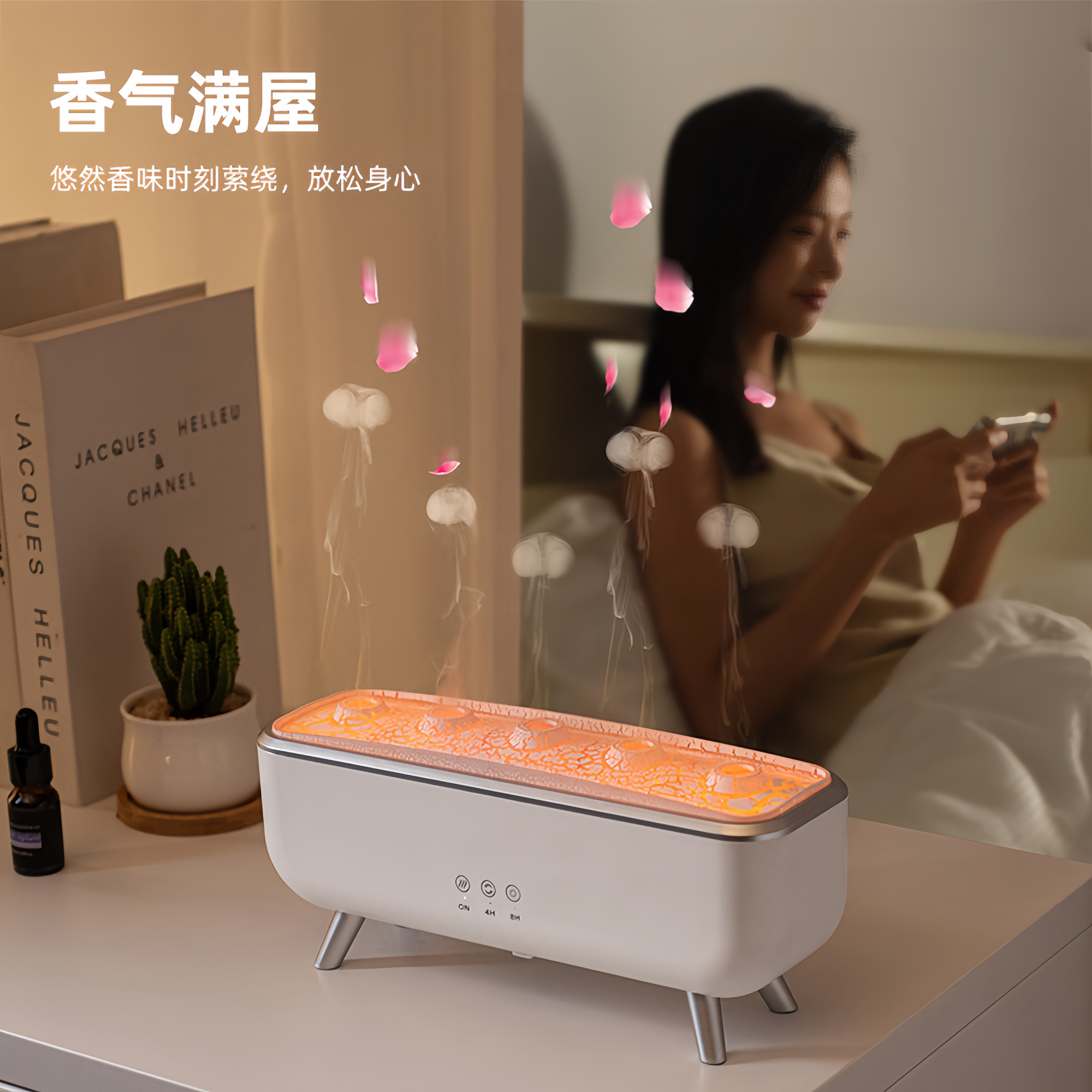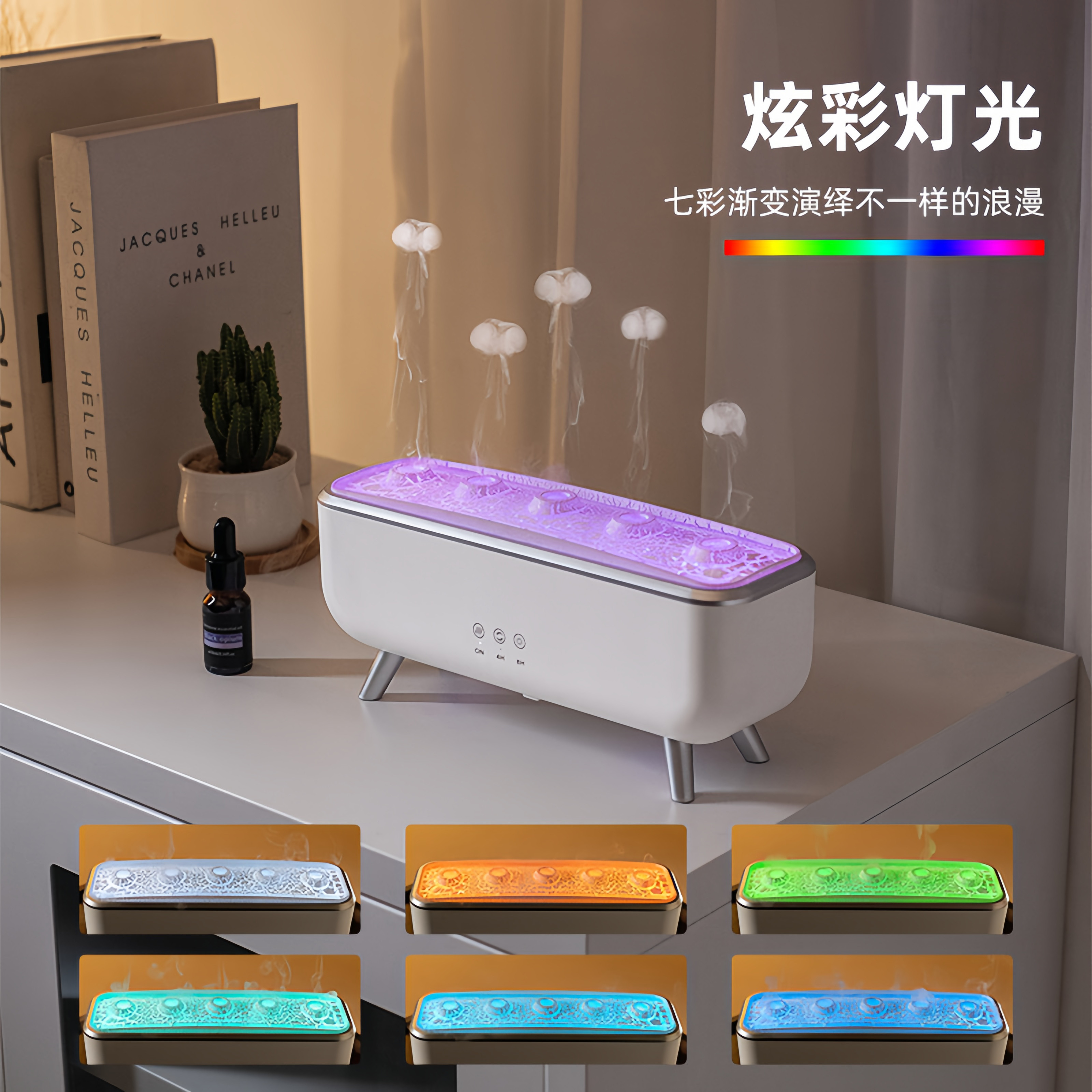 水母加湿器香薰机七彩空气喷雾火焰氛围感灯静音居家实用生日礼物
