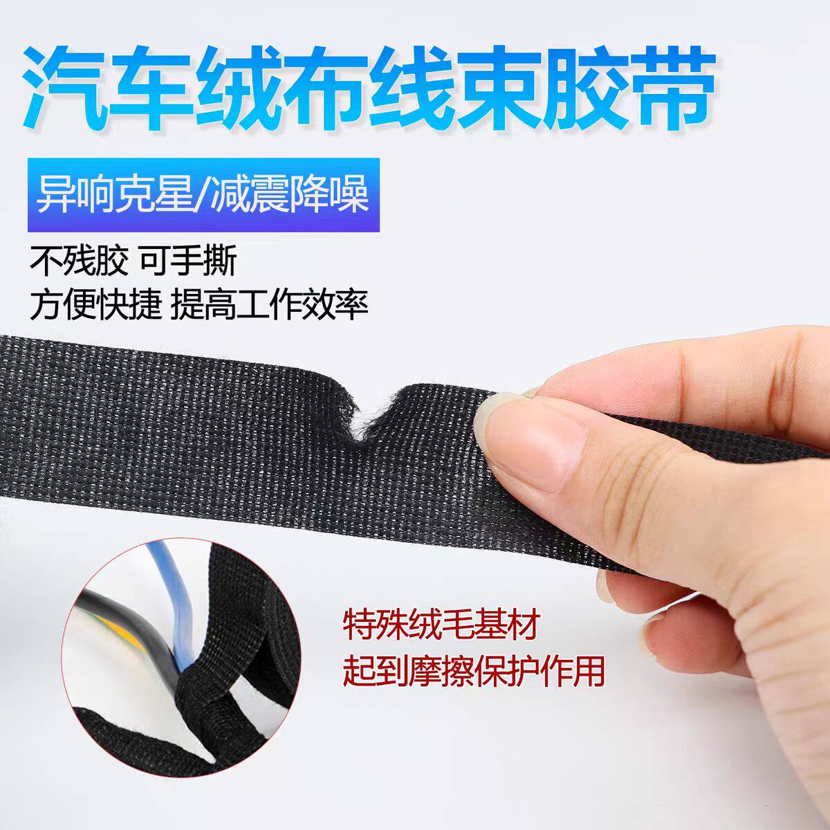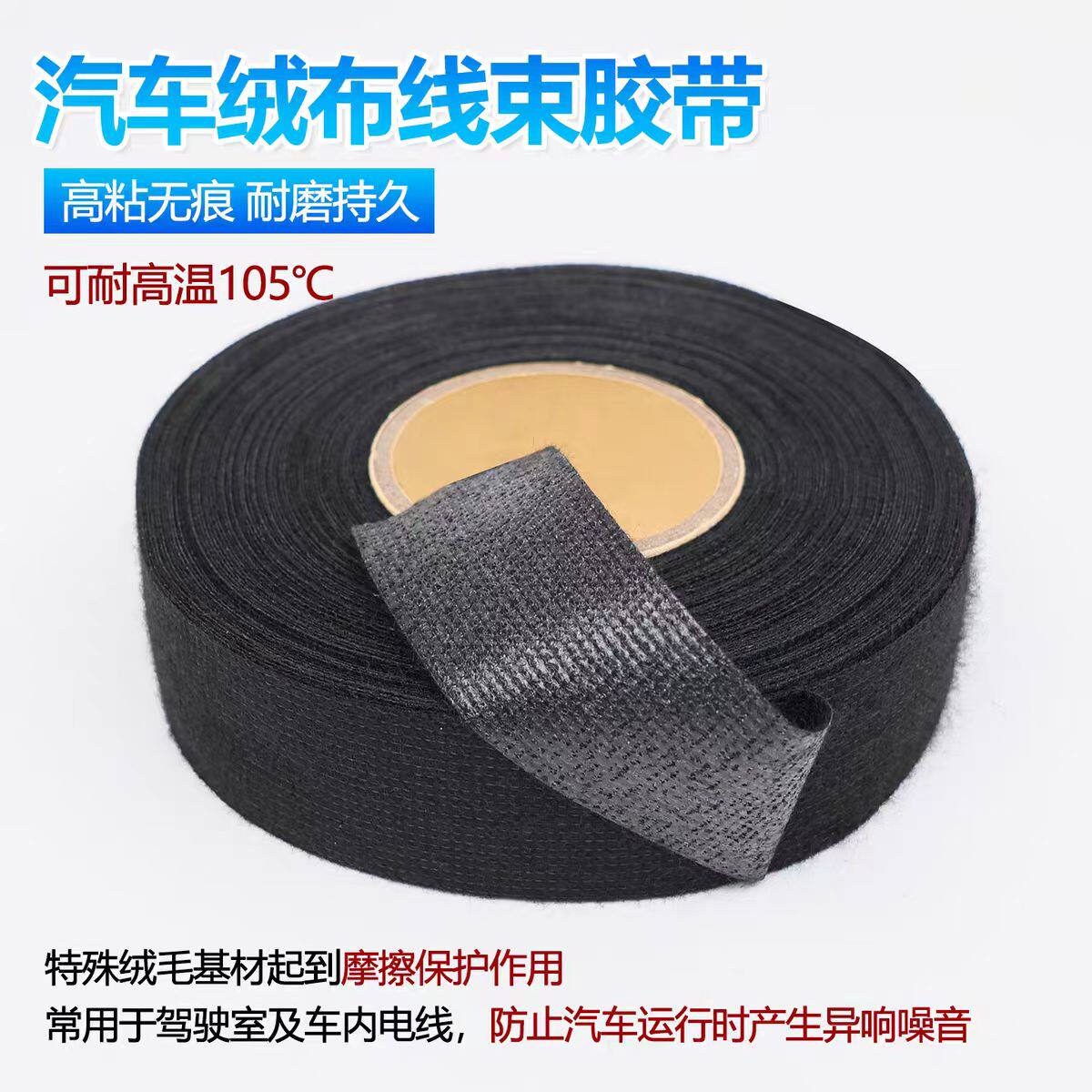 绒布胶带耐高温隔音布汽车线束胶带自熄绝缘静音异响电工涤纶胶布