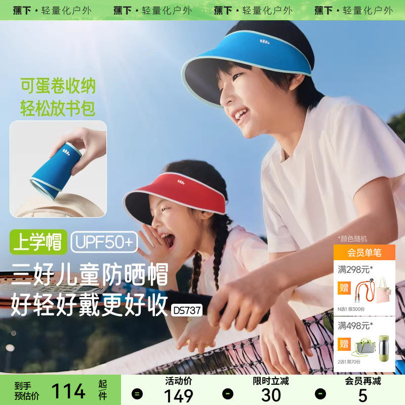 蕉下儿童一体无痕运动防晒帽DS737男童户外空顶帽女童遮阳帽子夏