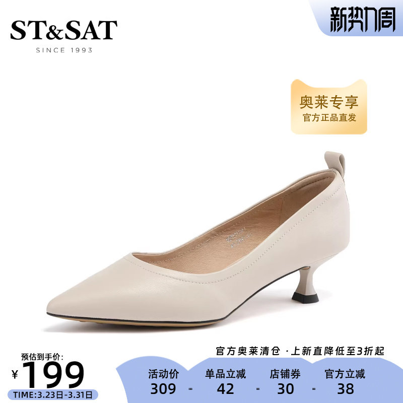 星期六尖头小皮鞋女春季新款中跟上班通勤黑色单鞋SS31111041