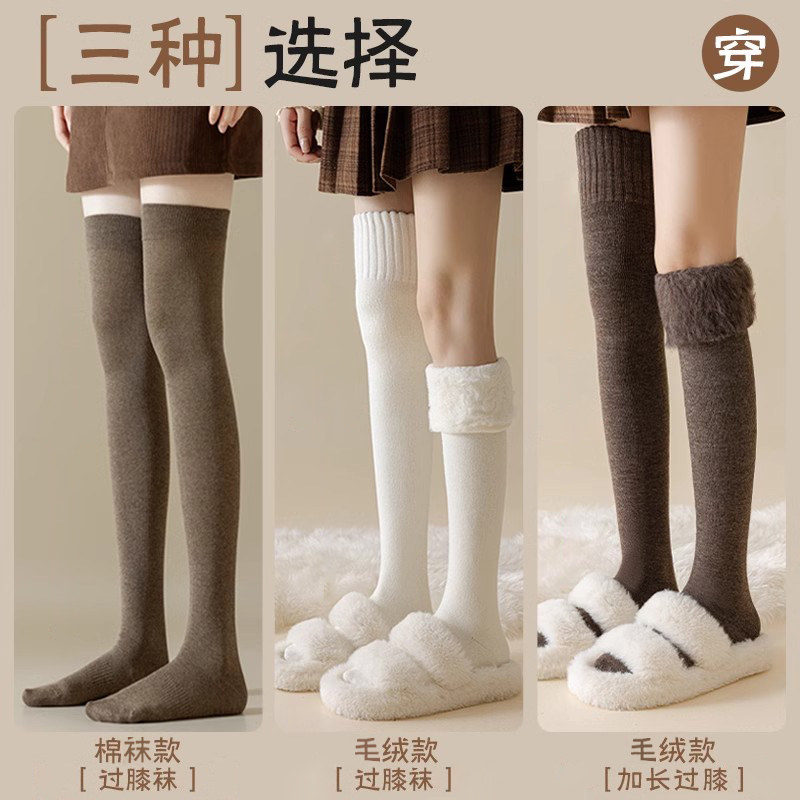 过膝袜女长筒秋冬季纯棉保暖加绒加厚防滑护膝腿套大腿长腿高筒袜