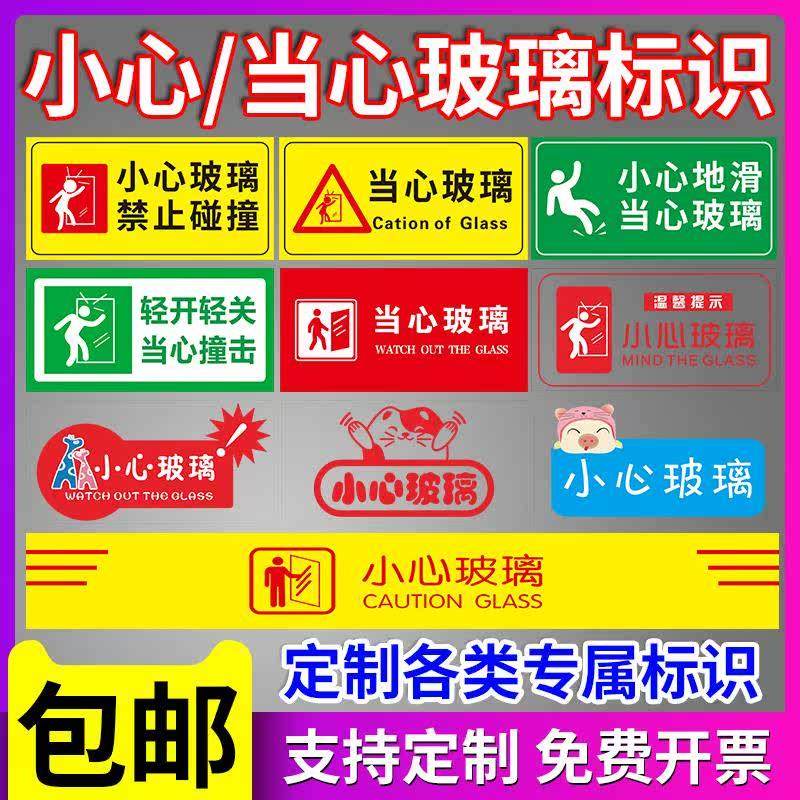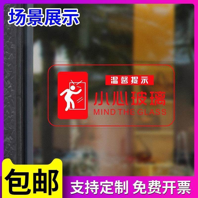 小心玻璃透明贴轻开轻关玻璃门温馨提示防撞透明标贴当心玻璃腰线商场橱窗告示贴纸纸禁止攀爬倚靠醒目标志定