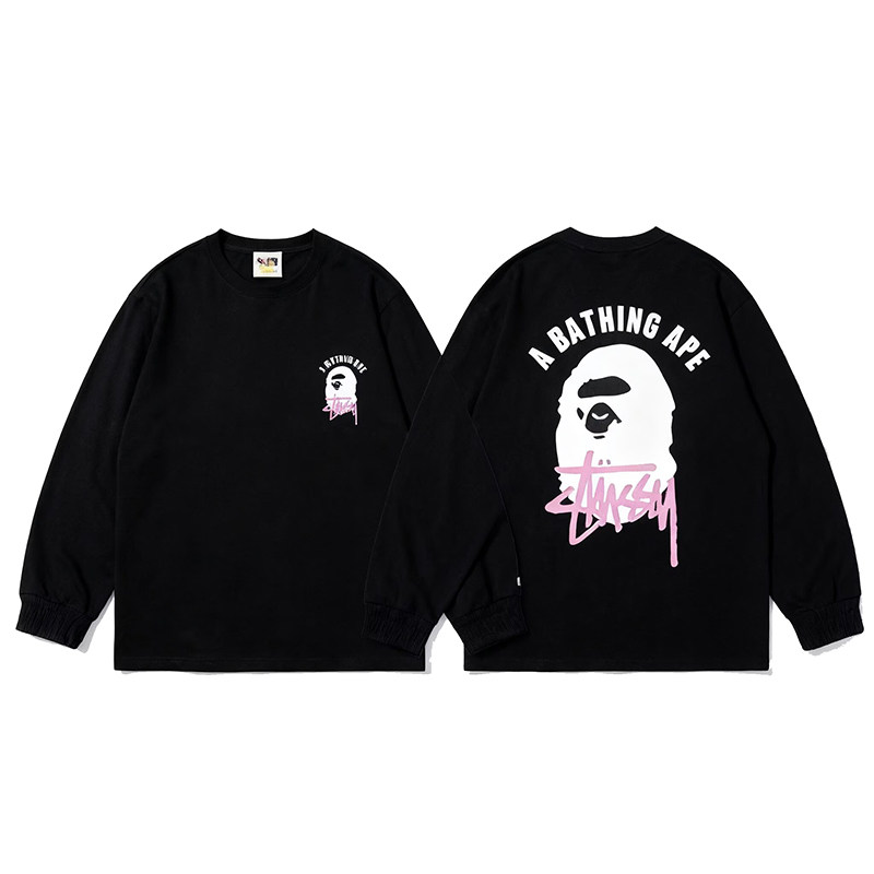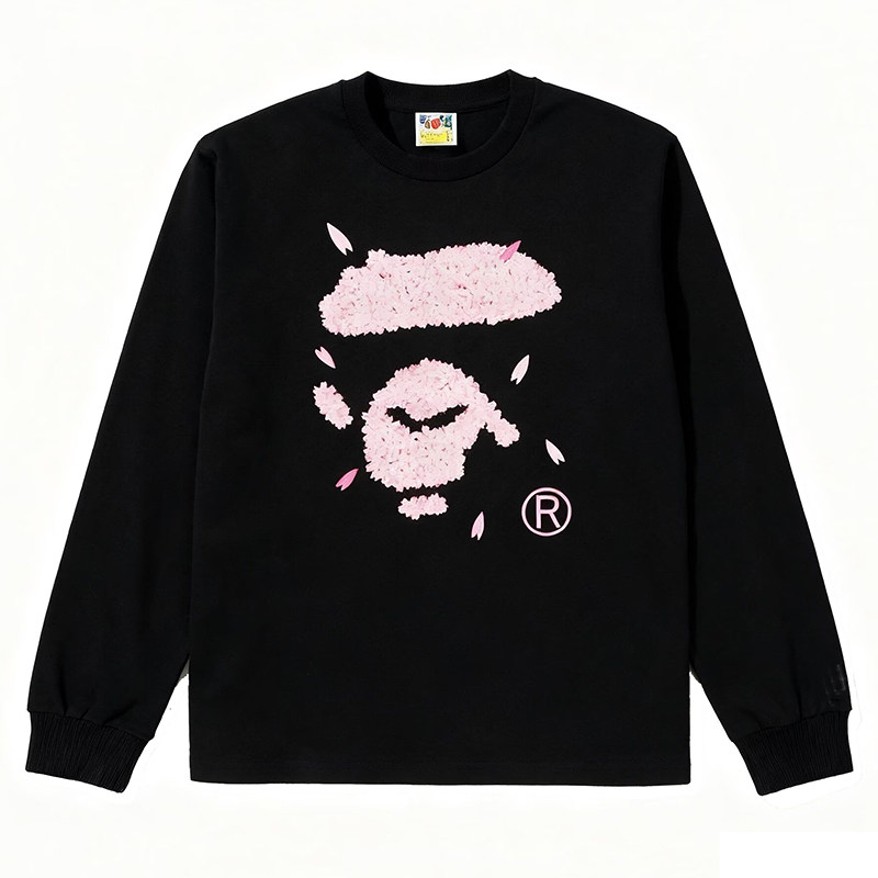 潮牌APE长袖T恤纯棉300g重磅高版本SHARK BAPE猿人迷彩打底衫亲子