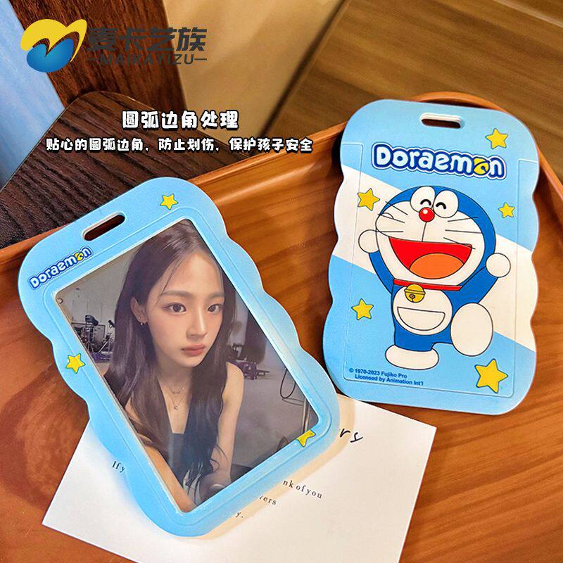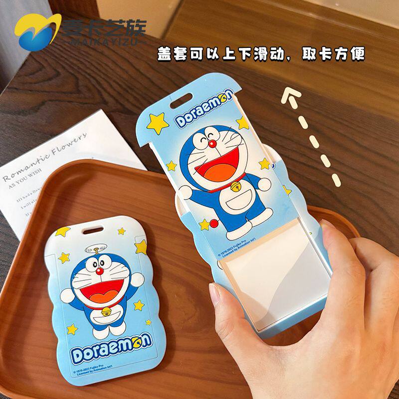正版授权哆啦A梦长绳卡套学生校园挂脖饭卡工牌门禁公交硬卡保护带挂绳校牌工厂牌钥匙扣卡套一体