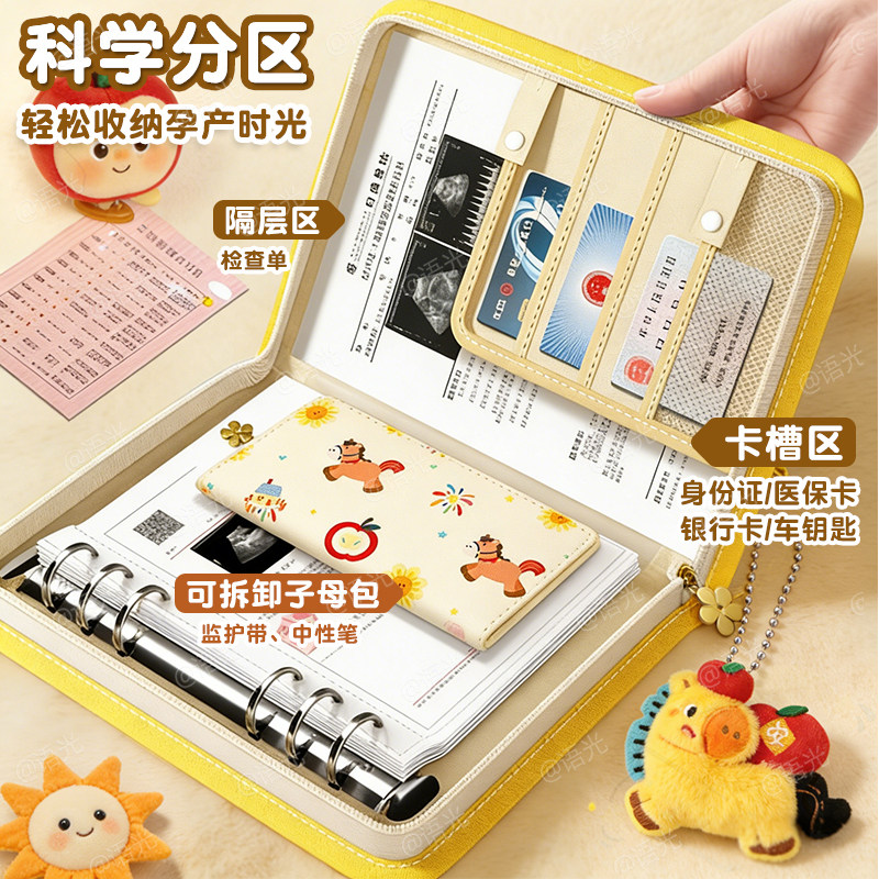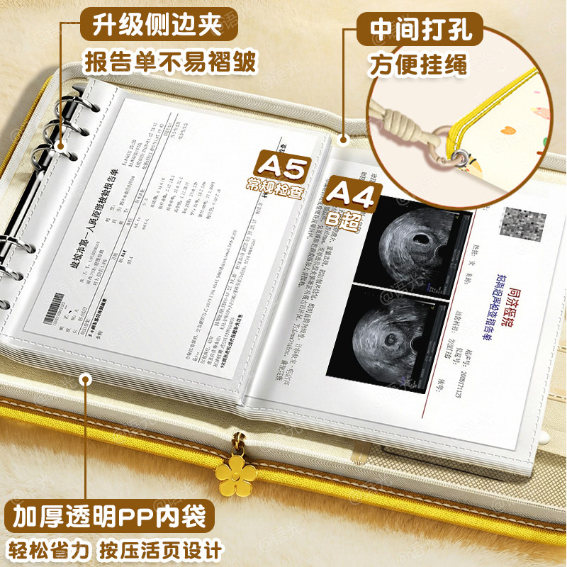 产检收纳册孕检收纳袋孕妇初期必备用品医院报告单孕期档案册带拉链产检本孕妈产检包检查资料记录册活页便携