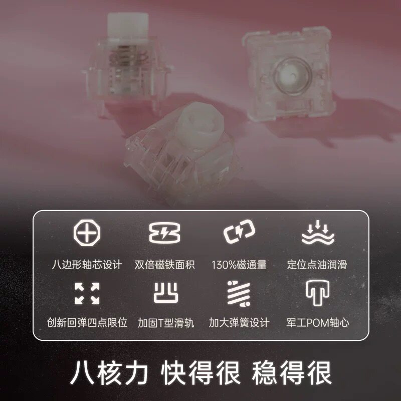 WuqueStudio无缺粉藕八宝磁轴麻将闷声磁轴客制化键盘轴体开关