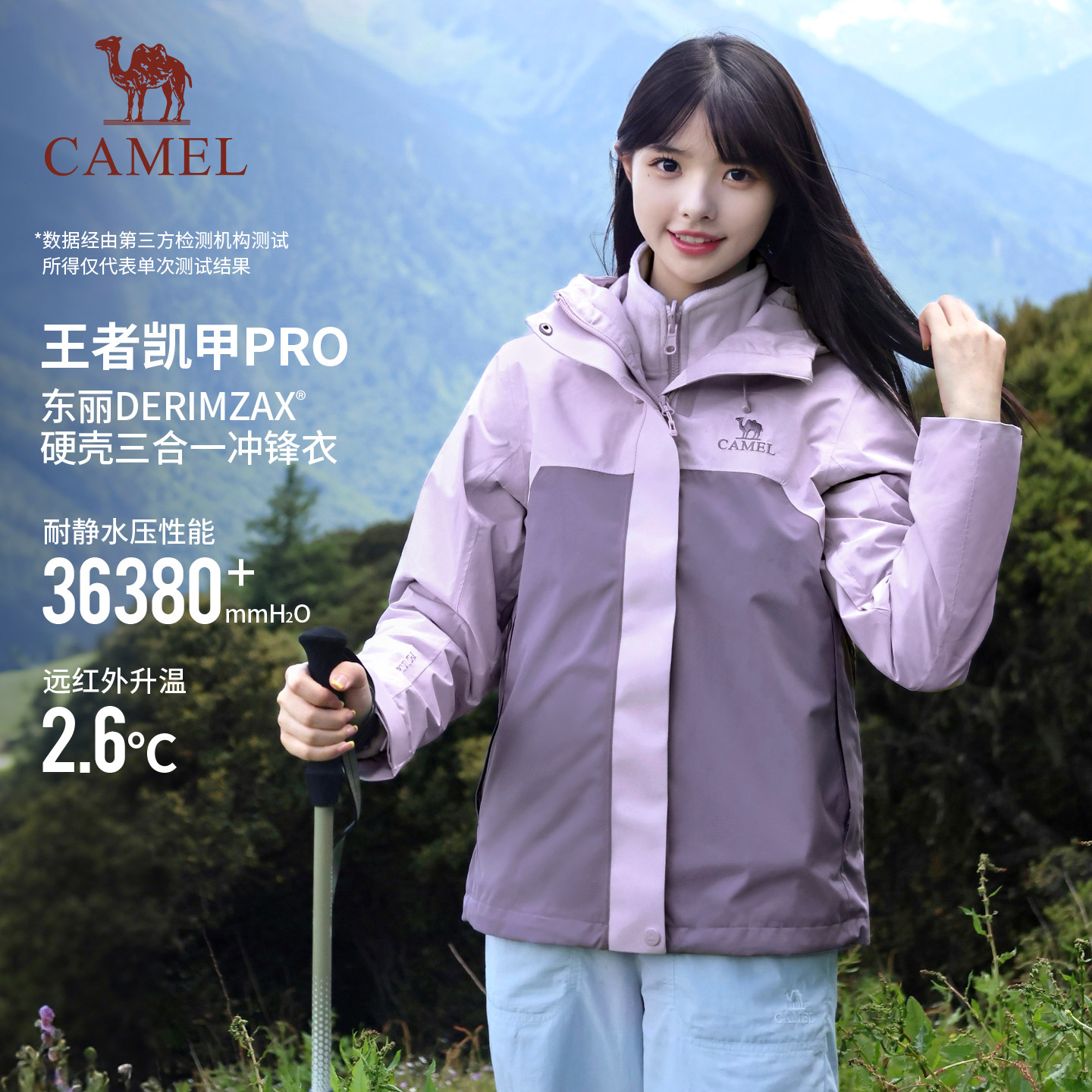 【春日粉】骆驼户外粉色冲锋衣男女款三合一鹅绒内胆羽绒服外套冬