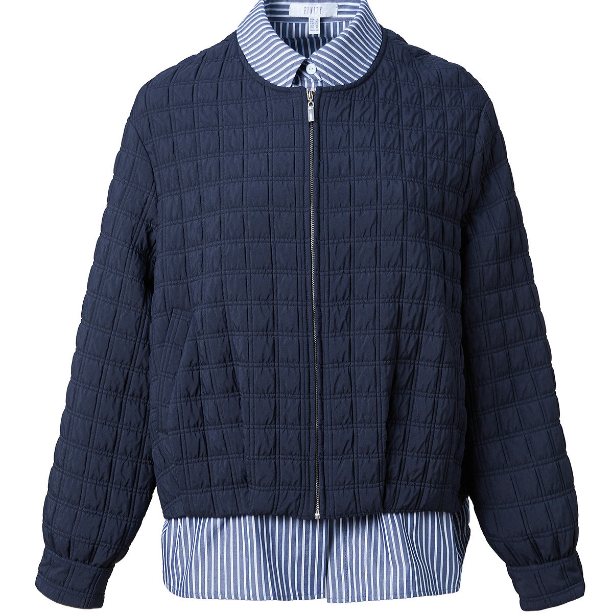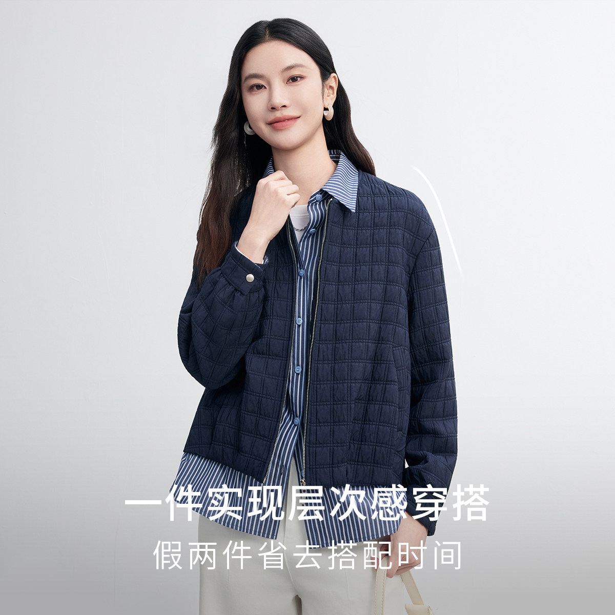 FINITY菲妮迪假两件短外套2026春新款衬衫领条纹通勤外套上衣女装