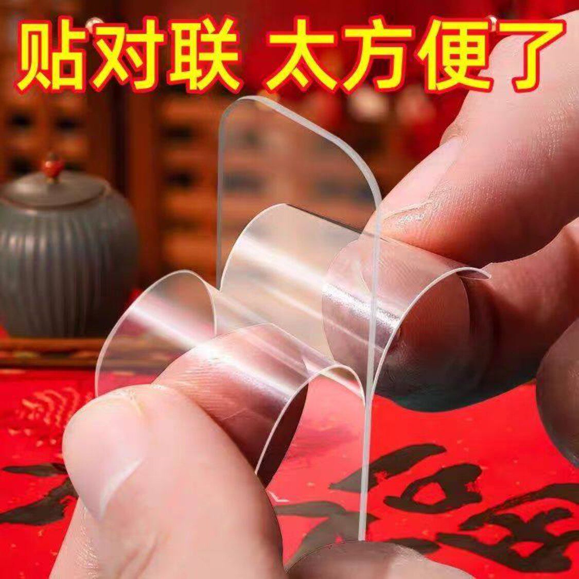 春联无痕双面胶墙面对联自粘透明胶贴婚车婚房多用途强力纳米胶