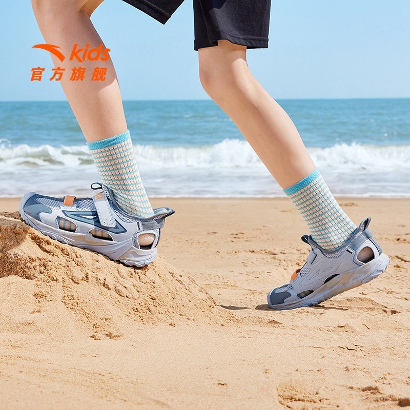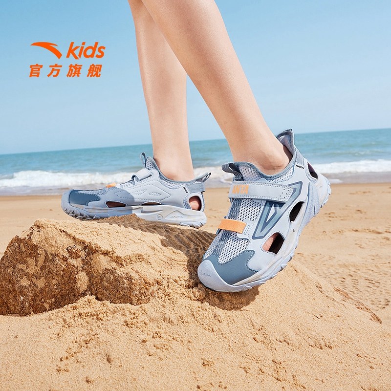安踏儿童凉鞋男大童沙滩鞋2025夏季新款防滑一脚蹬包头涉水溯溪鞋