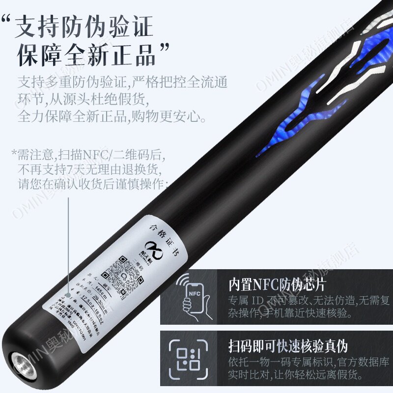 奥秘旗下酷无极破军台球杆小头中式黑八球杆九球杆斯诺克桌球杆通