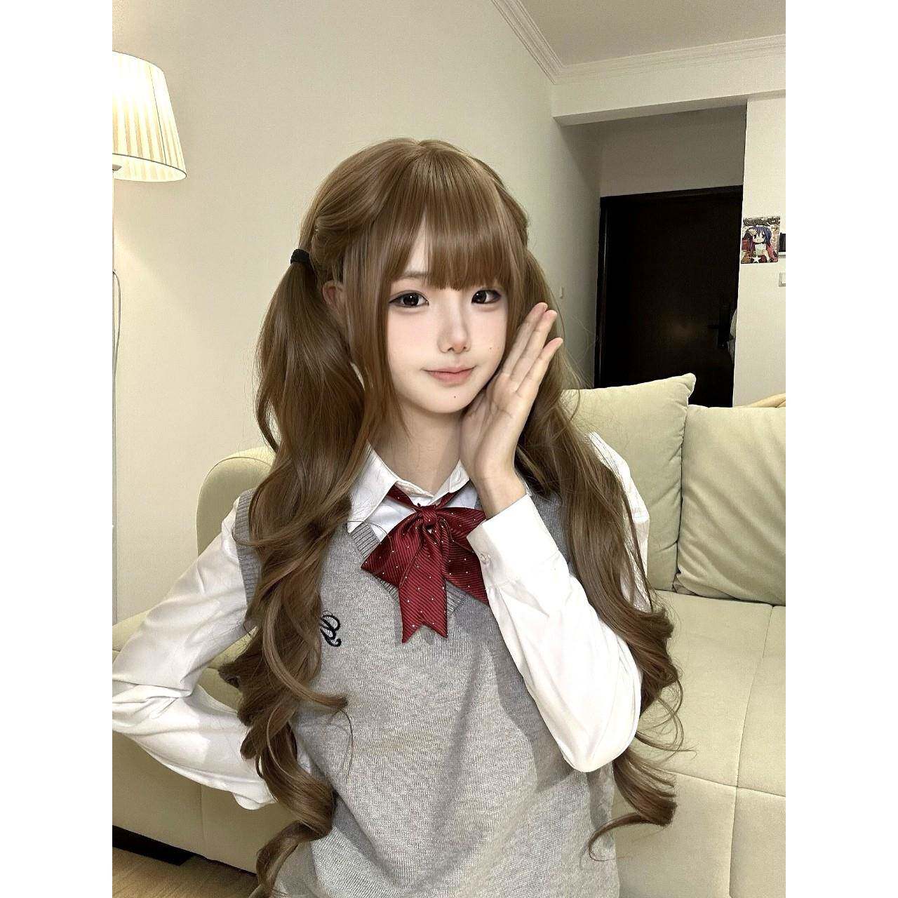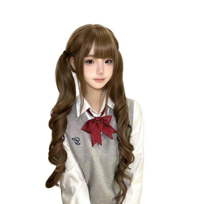 可与双马尾发货苗条美女假发女子长发洛丽塔80蜂蜜棕色刘海发型