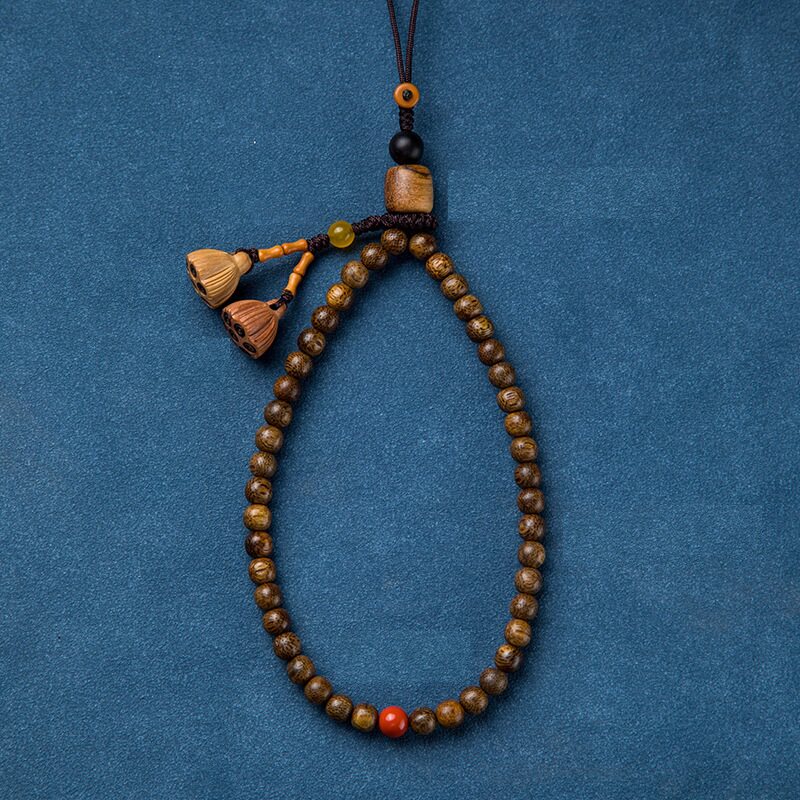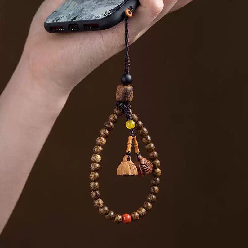 中国风复古加里曼丹沉香木手机挂链女款挂绳短款手腕挂件挂饰吊绳