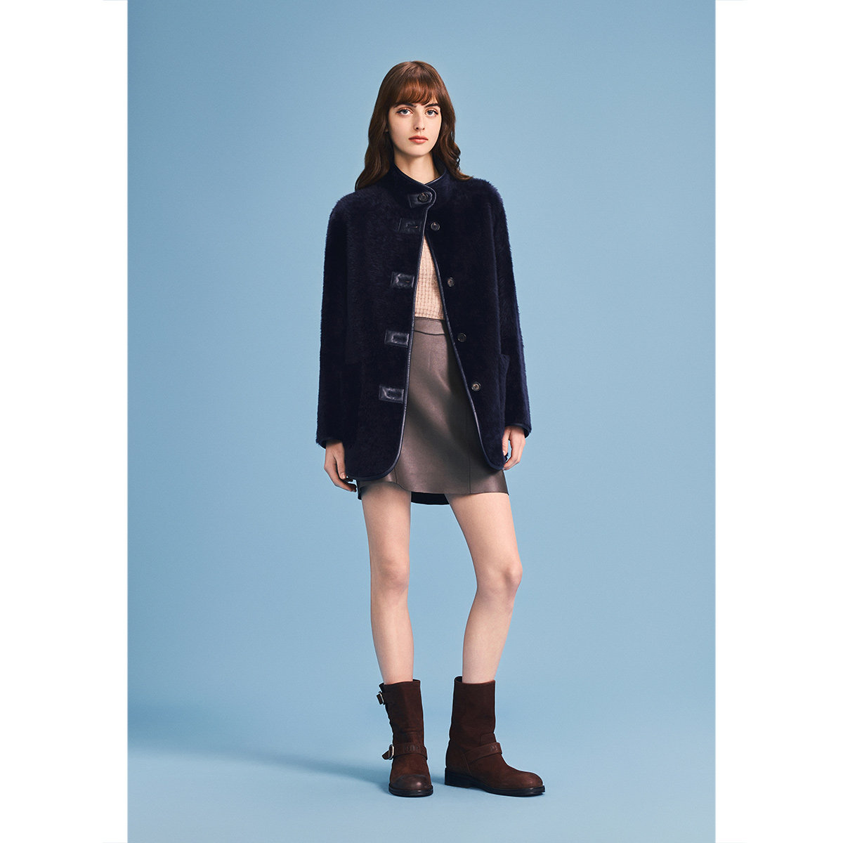诗篇专选复古立领廓形皮毛一体皮草外套2026春季新款