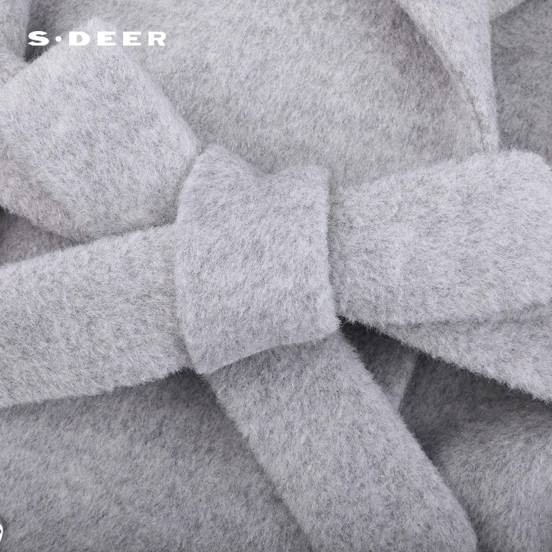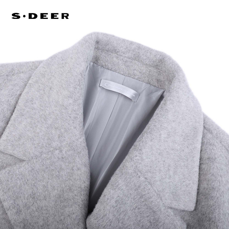 sdeer圣迪奥女装25年新品OL风西装领收腰呢子长款大衣S25482508