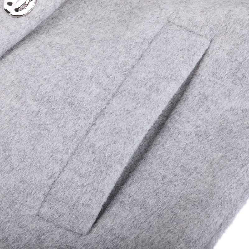 RUISHI芮时重磅驼绒桑蚕丝羊毛慵懒两穿领灰色毛呢大衣秋冬外套女
