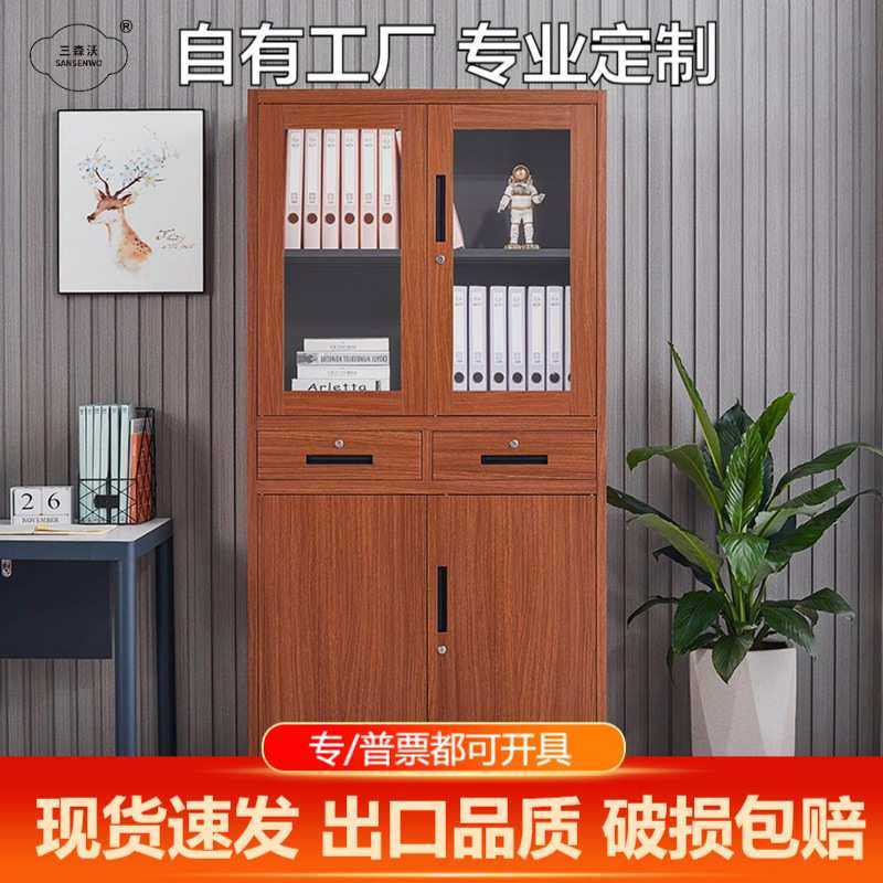 木纹档案柜转印办公室铁皮柜仿木书柜落地柜子透明矮柜拆装文件柜