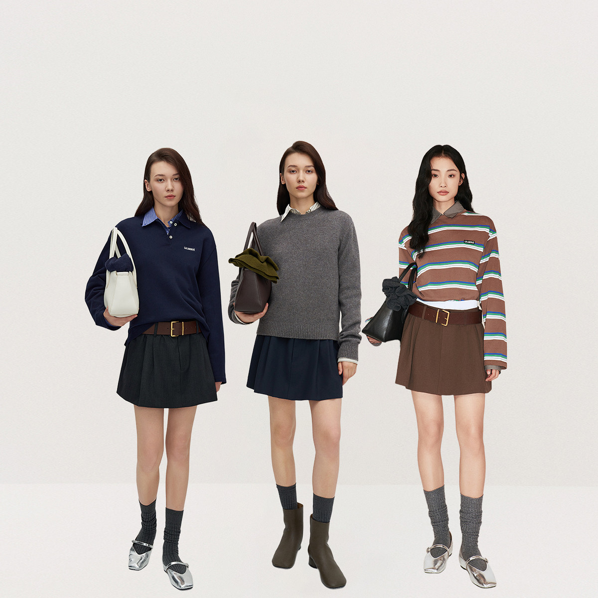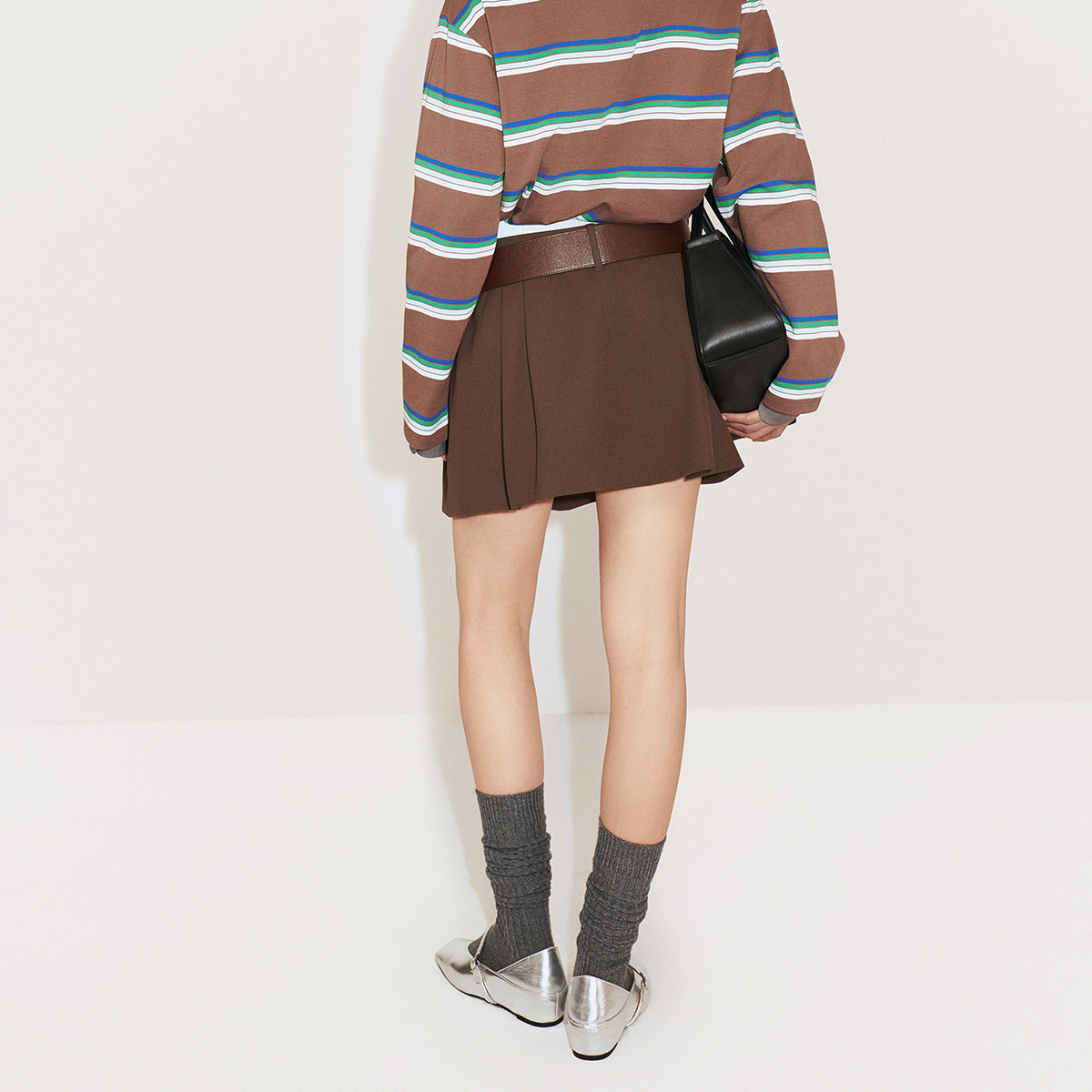 【季末折扣】欧时力羊毛精纺A字半身裙短裙褶裙设计感秋冬新品